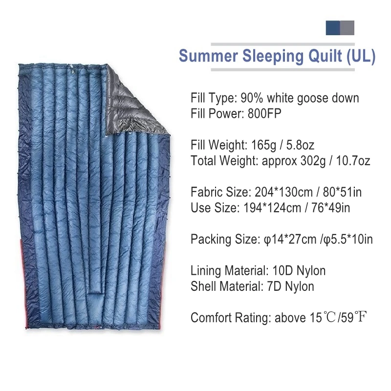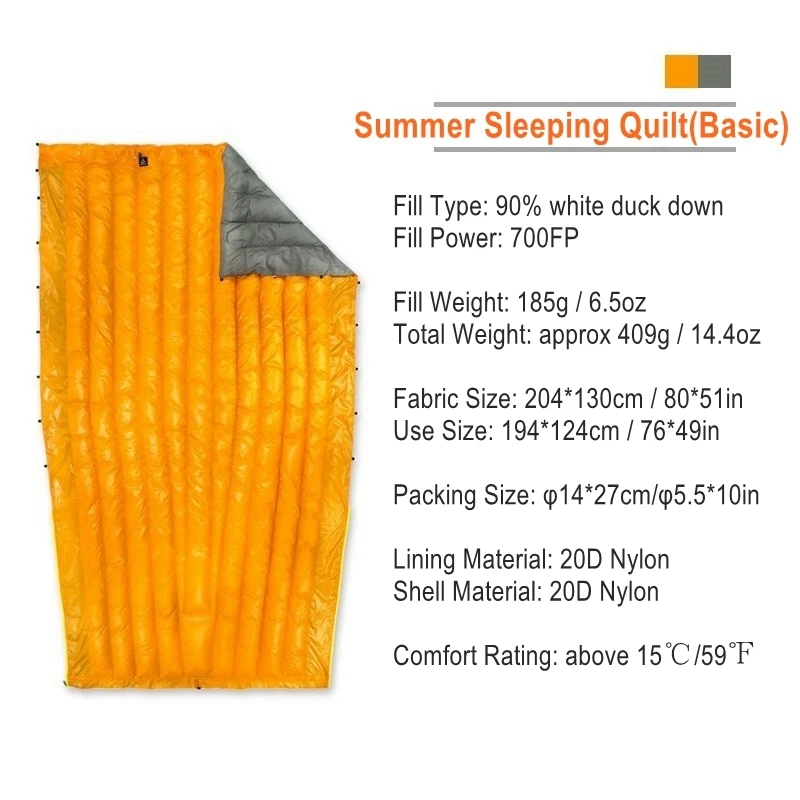 Летнее спальное одеяло (базовое)Тип заполнения: 700FP 90% белый утиный пух