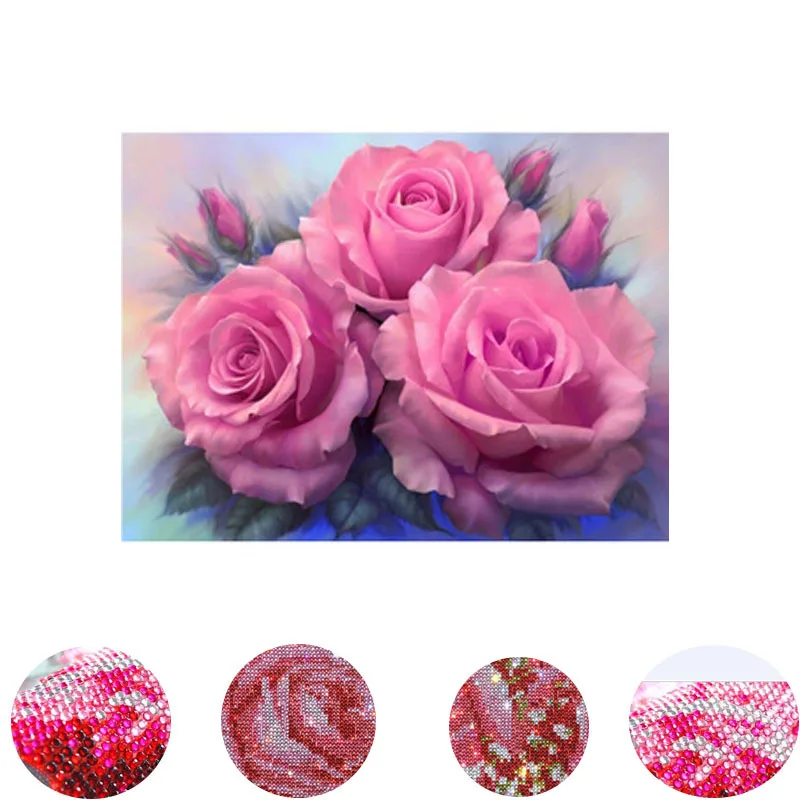 2022 Новое поступление, 5D кристалл, сделай сам, алмазная живопись, круглая, 3 шт., розы, алмазная вышивка, мозаика, картина Стразы для подарка