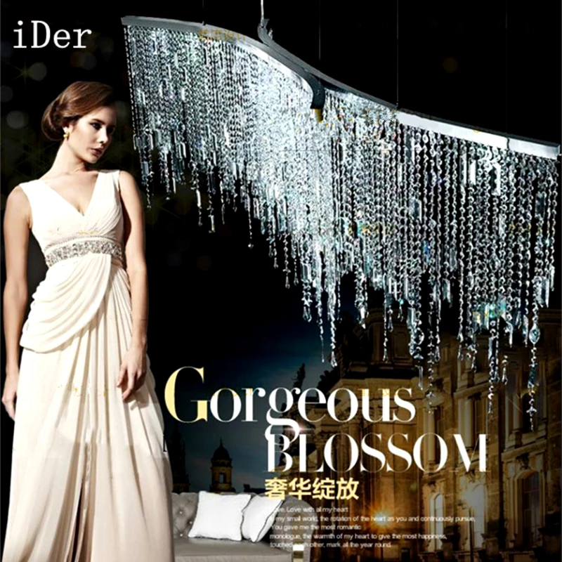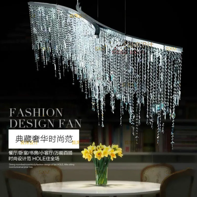 1. Входное напряжение: AC85V-260V 2. Материал: хрусталь и железо 3. Светильник источник: Светодиодные ленты 4. Стиль: Современный 5. Применение: гостиная, спальня, отель, кофе, конференц-зал, дом 6. Размер: L39.4 "x W13.8" x H18.5 " - 59" (дюйм) 7. Форма: длинная