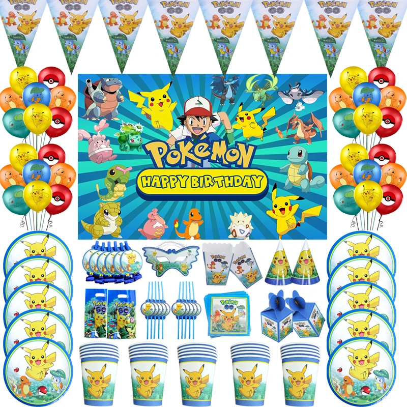 TAKARA TOMY Пикачу Покемон тематический день Рождения Декоративные столовые принадлежности наборы бумажные тарелки и стаканы шляпы воздушный шар детский душ принадлежности