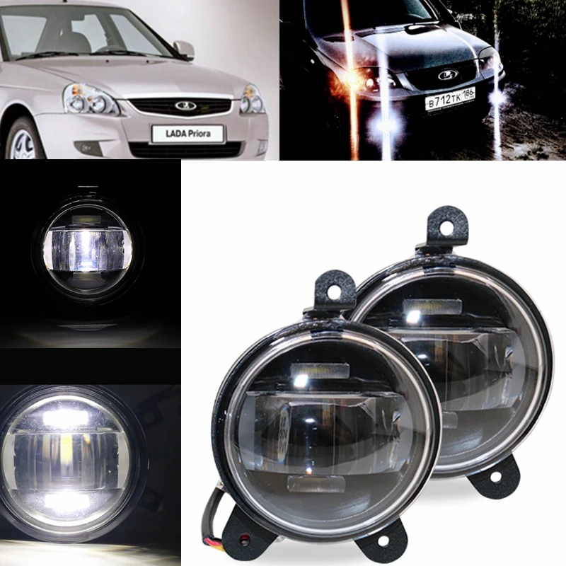 Круглсветодиодный Противотуманные фары 3,5 дюйма, белые дневные ходовые огни и желтый сигнал поворота, для lada Priora Niva Chevrolet Gazelle, России, автомобилей
