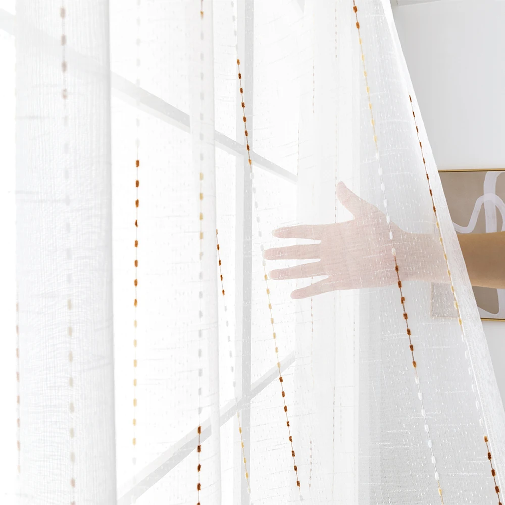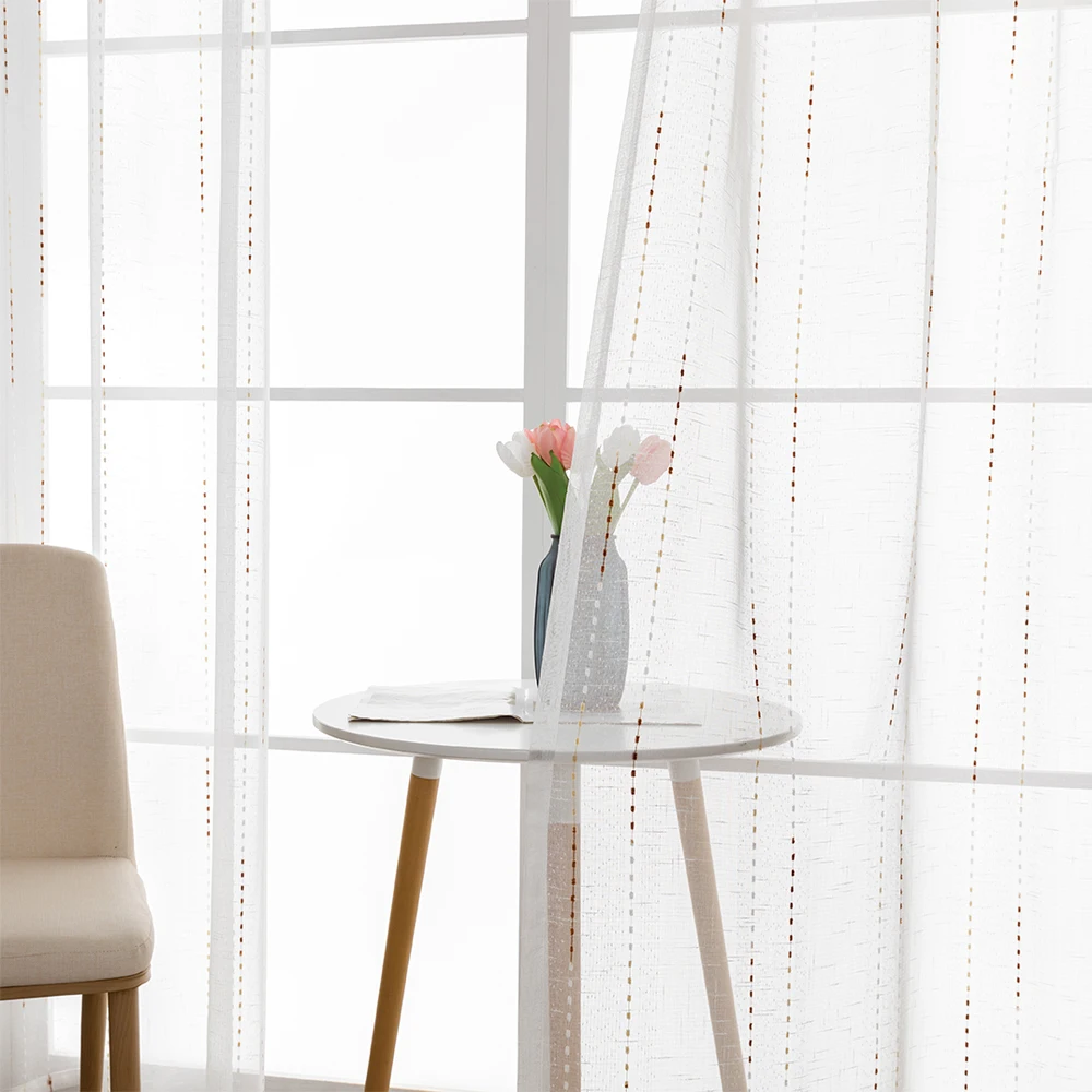 Шторы XUNTUO в японском стиле, прозрачные тюлевые занавески в полоску для гостиной, спальни, Современные Простые занавески для окон, драпировки