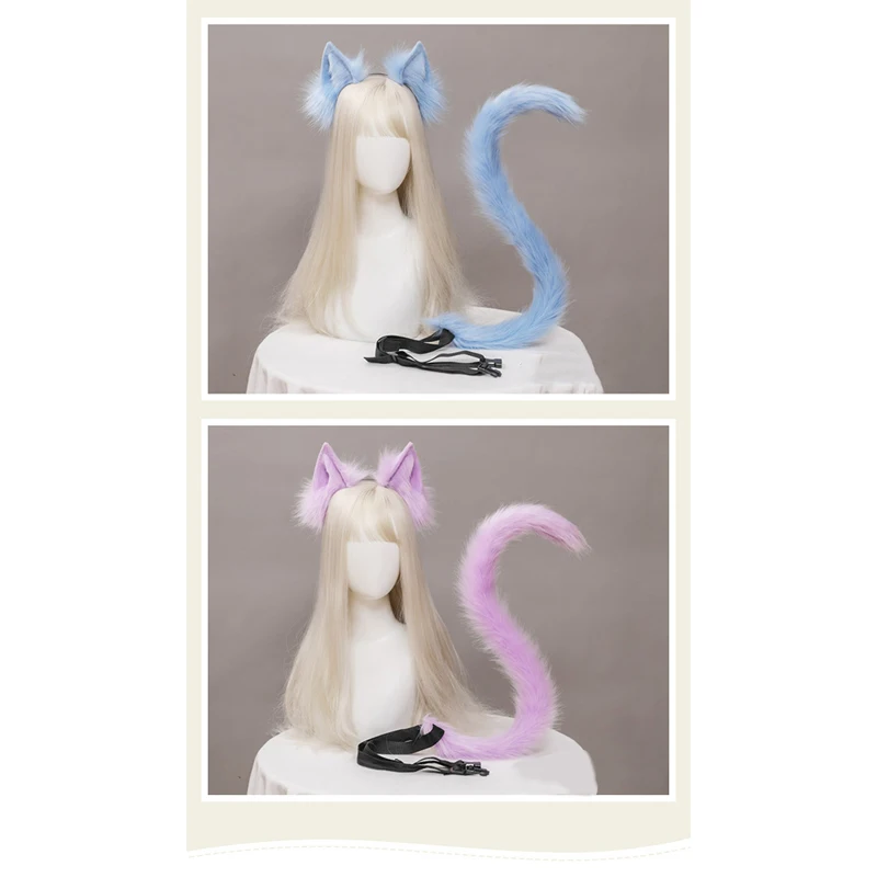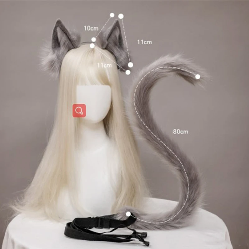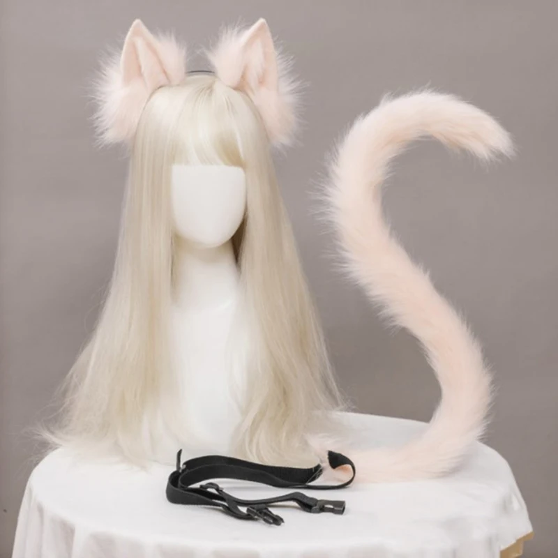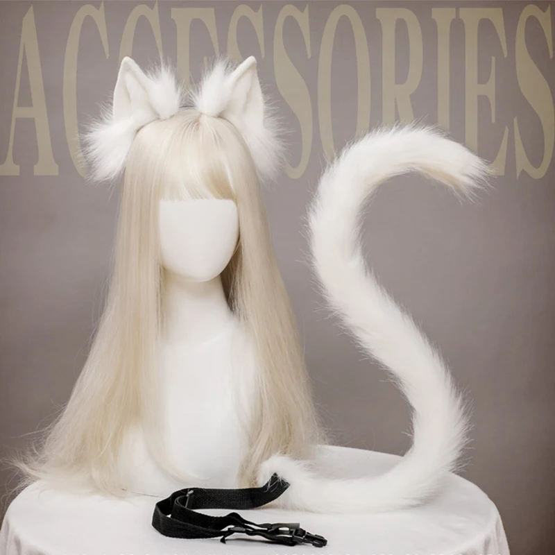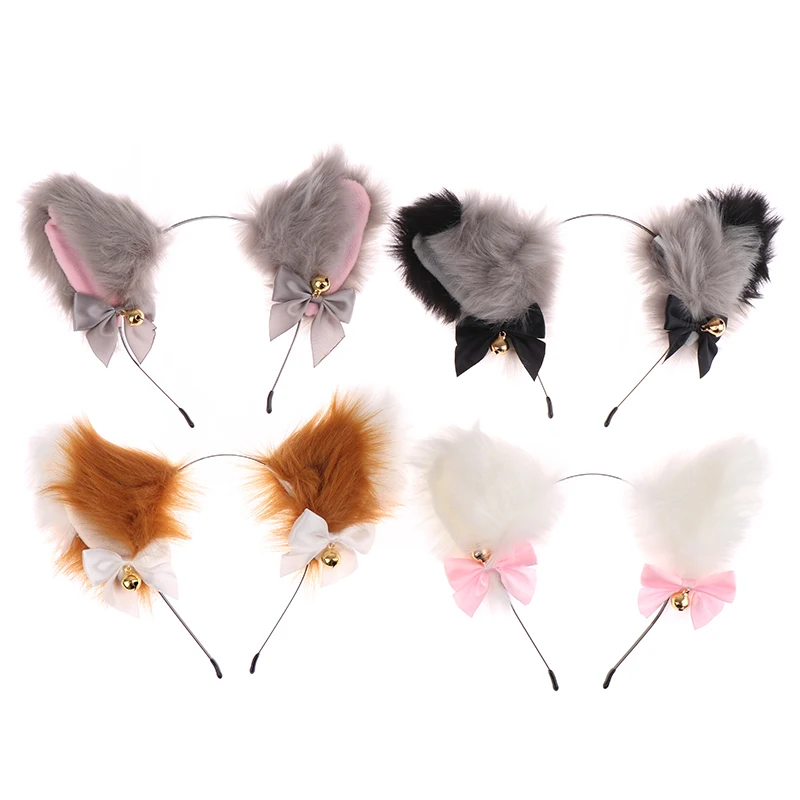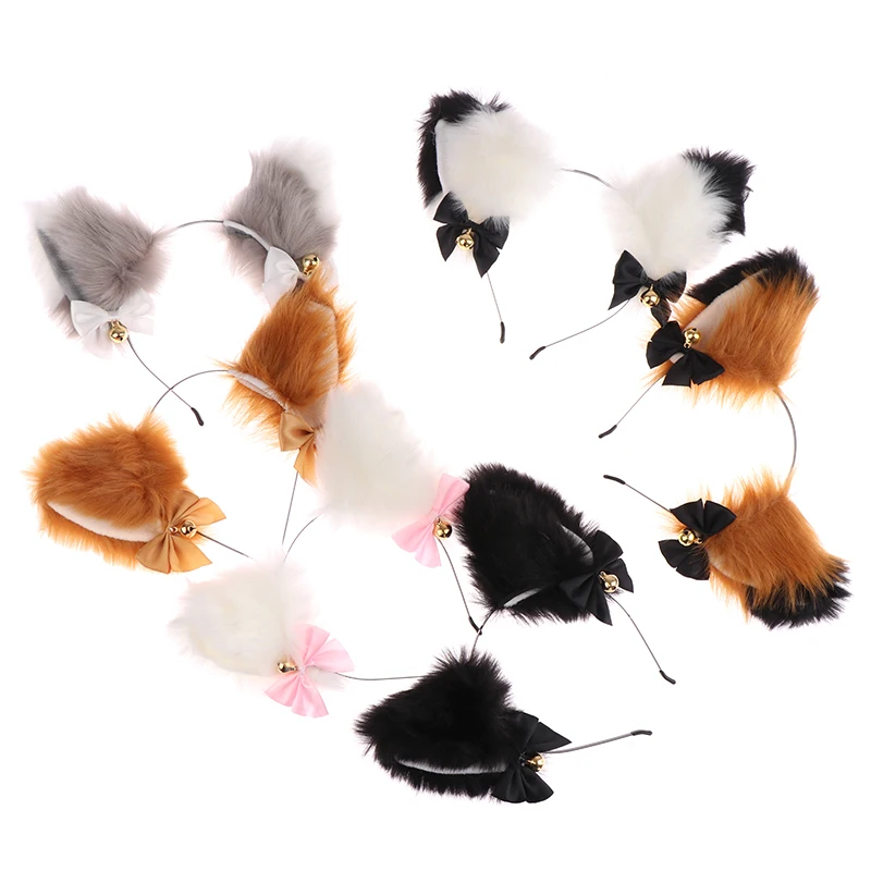 Плюшевые кошачьи ушки, повязка на голову в стиле "Лолита", кошачий хвост, аксессуары для косплея, ручная работа, имитация ушей животных, галстук-бабочка, колокольчик, головной убор на Хэллоуин