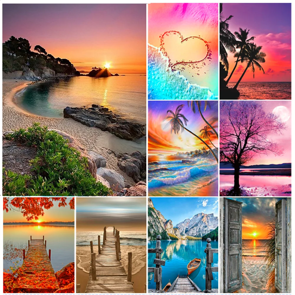 5D DIY алмазная живопись, пейзаж, закат, море, полная вышивка, Пляжный Пейзаж, мозаика, искусство, картина Стразы, домашний декор