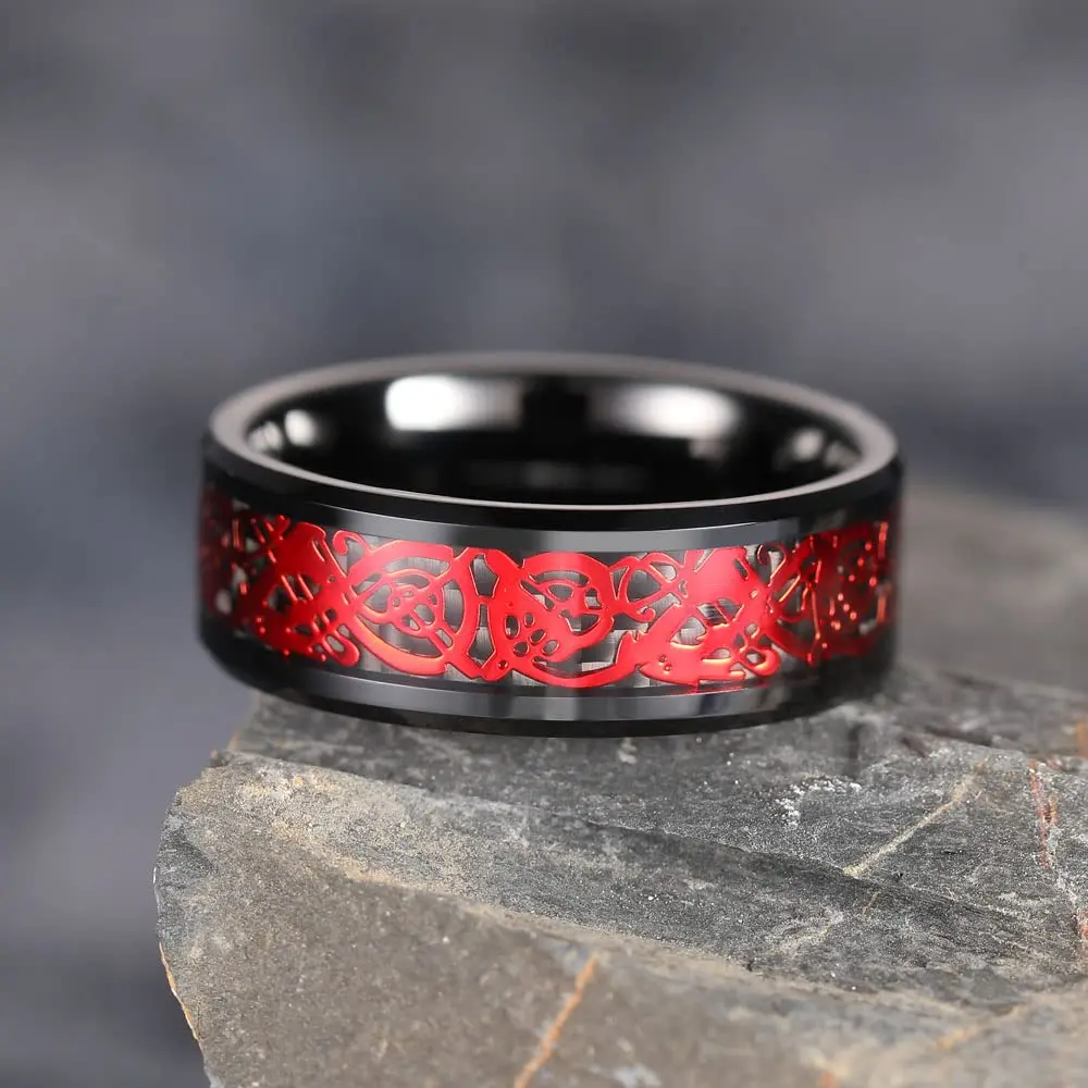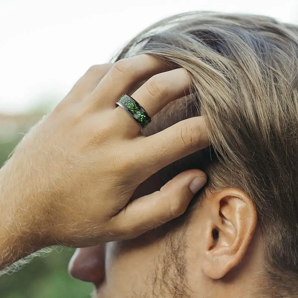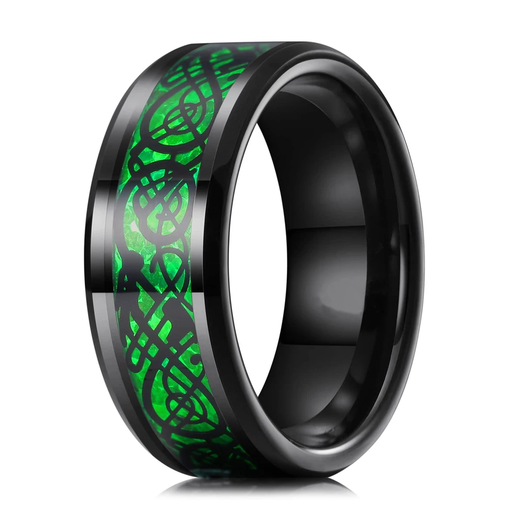 2022 тренд 8 мм зеленый углеродное волокно инкрустация черный Вольфрам обручальное кольцо для мужчин кольцо из нержавеющей стали кельтский дракон кольцо для мужчин обручальное кольцо