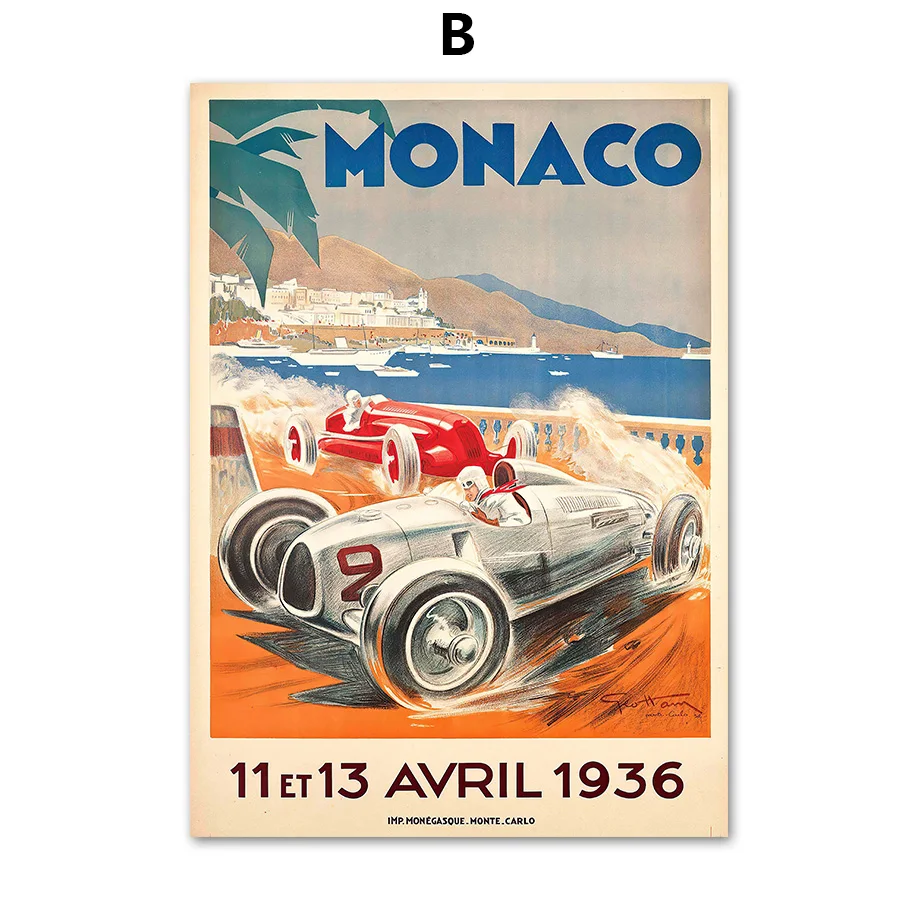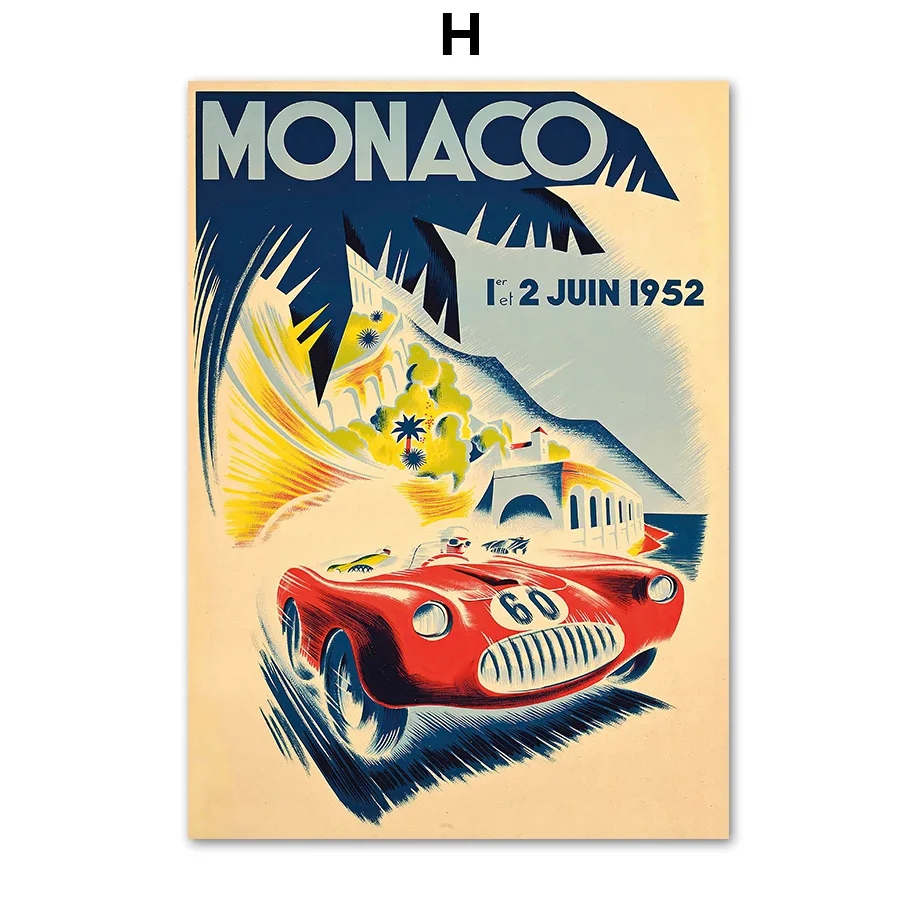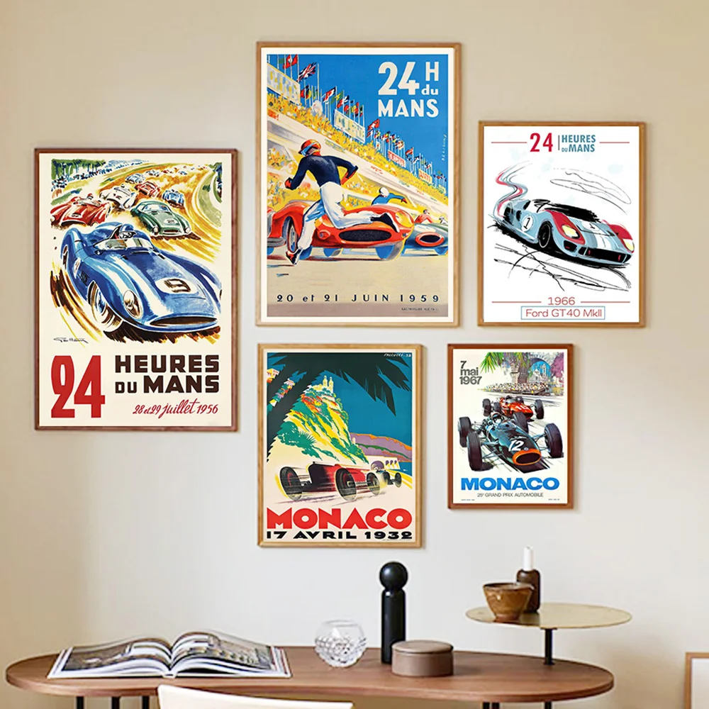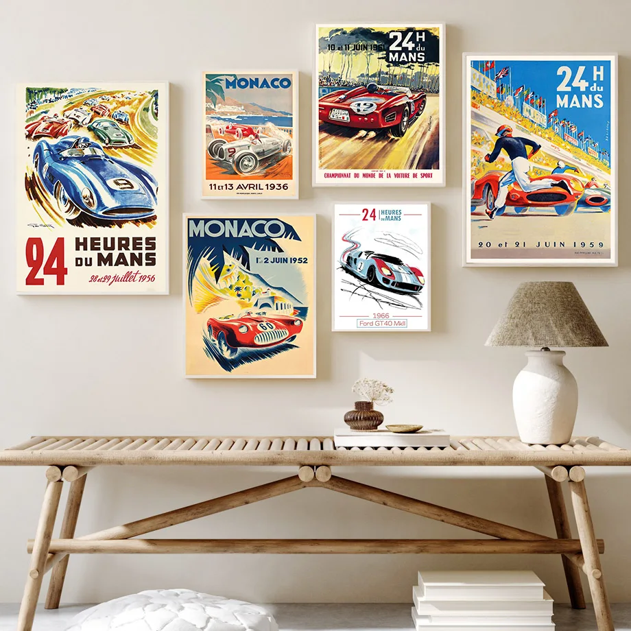 Винтажная Картина на холсте с изображением машины Монако, 24 часа, скандинавские постеры и принты на стену для гостиной