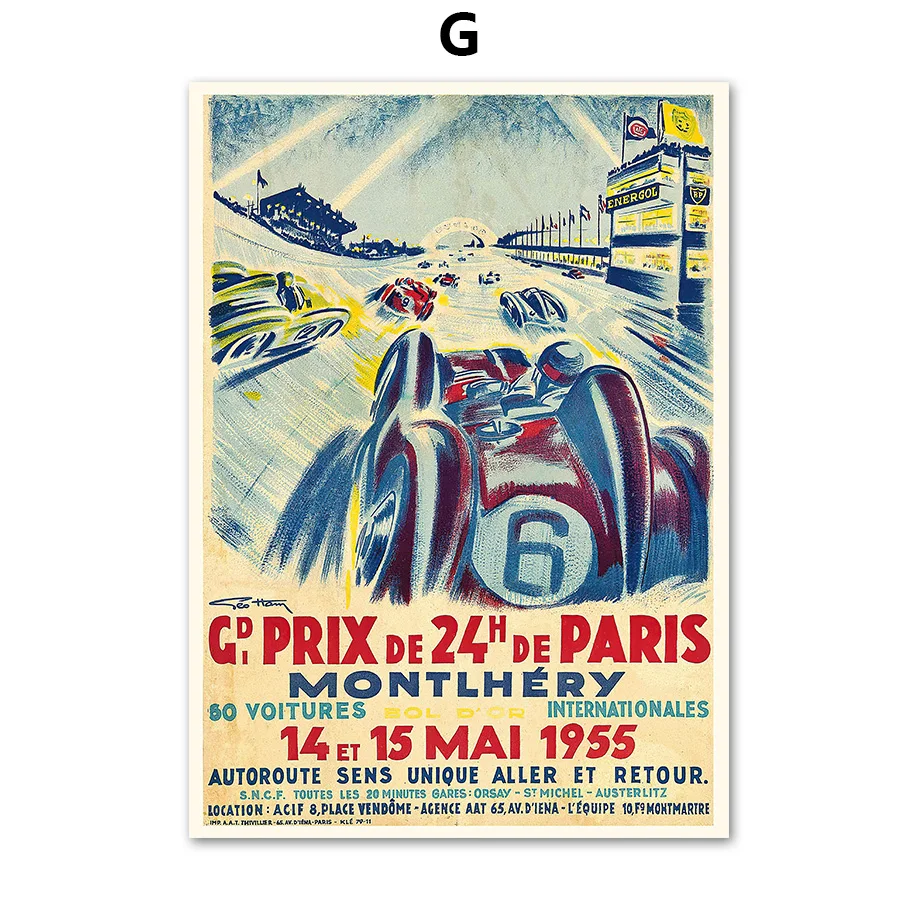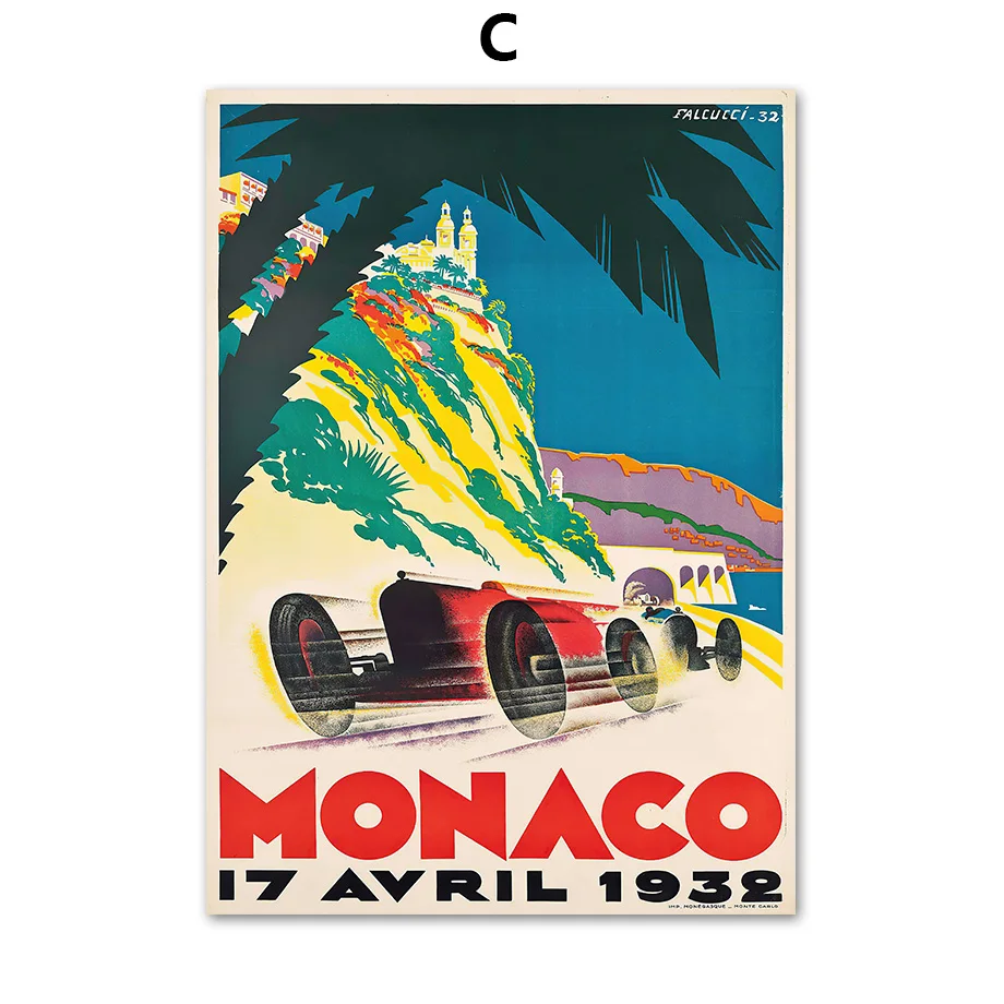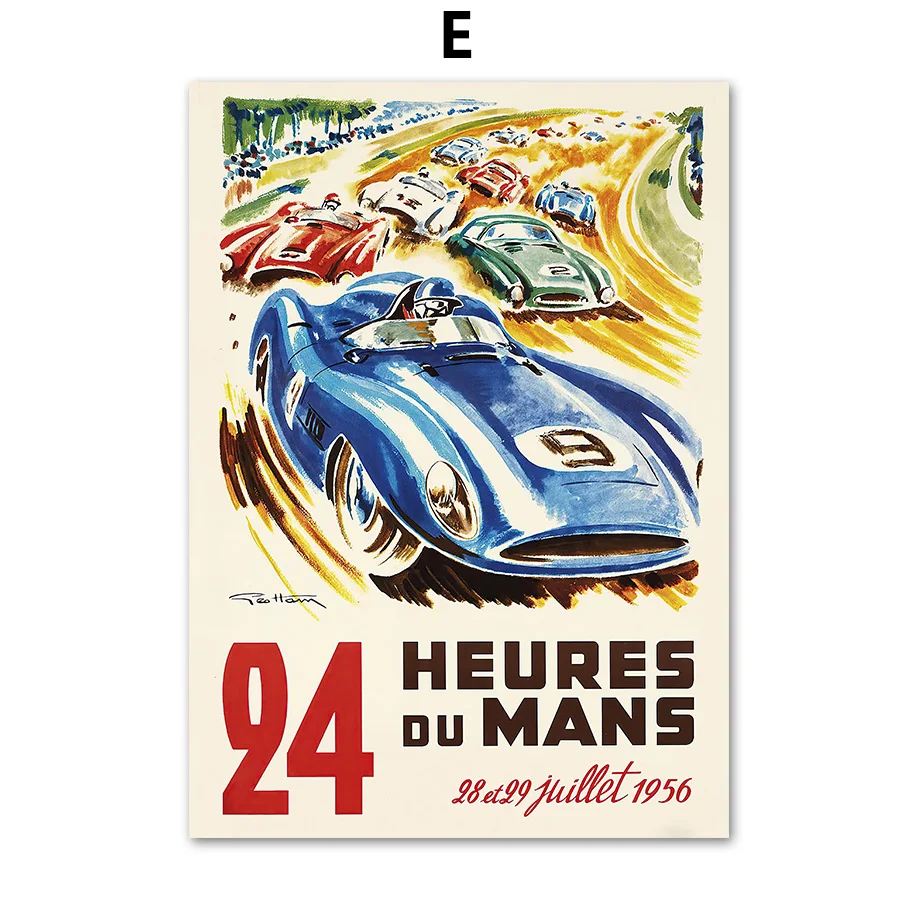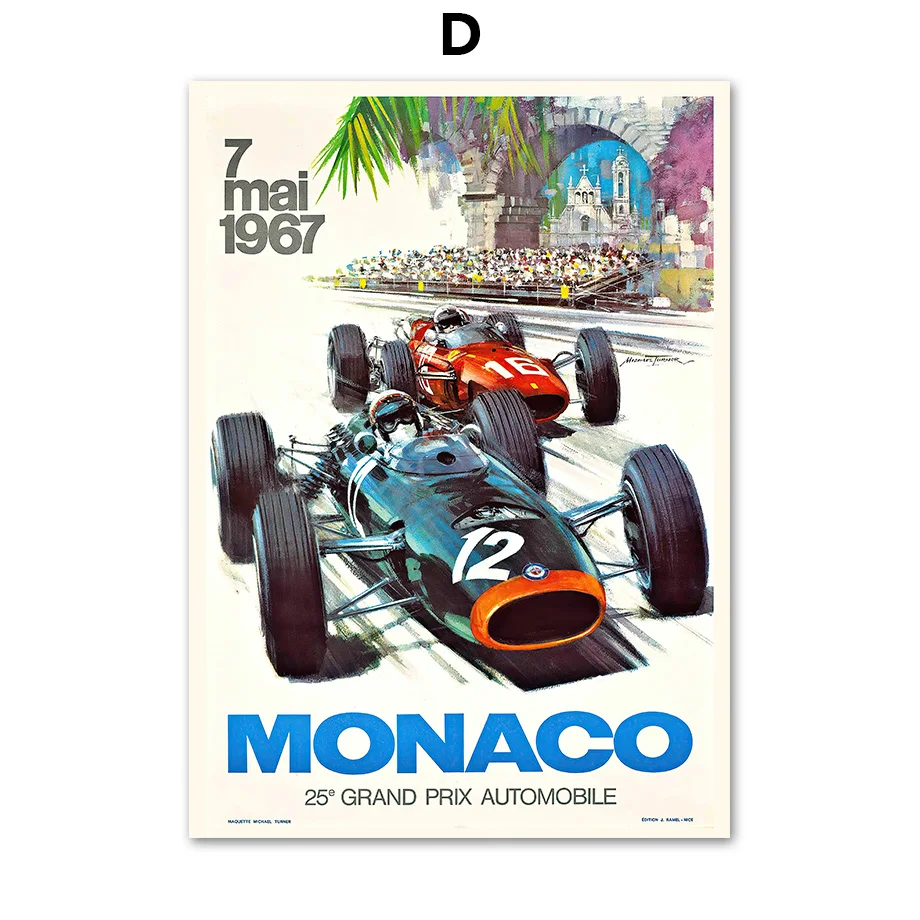 Винтажная Картина на холсте с изображением машины Монако, 24 часа, скандинавские постеры и принты на стену для гостиной