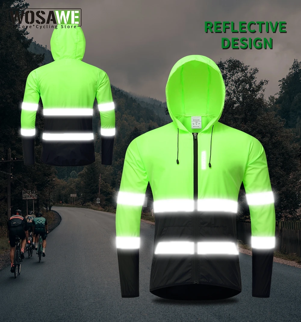 WOSAWE Мужская велосипедная Светоотражающая ветровка с капюшоном для бега