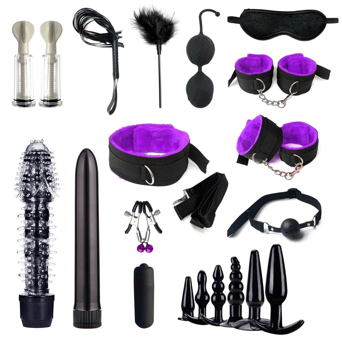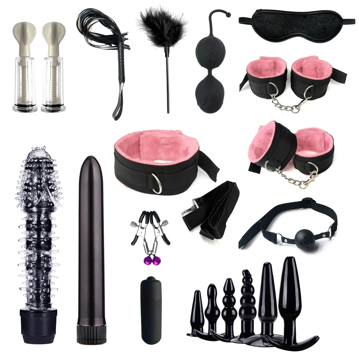 Набор для БДСМ секс-игрушки для пар женщин мужчин наручники зажимы для сосков плетка для шлепков секс металлическая Анальная пробка Вибратор Анальная пробка Набор для БДСМ бондажа