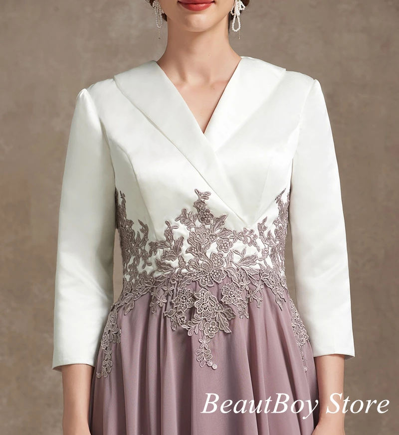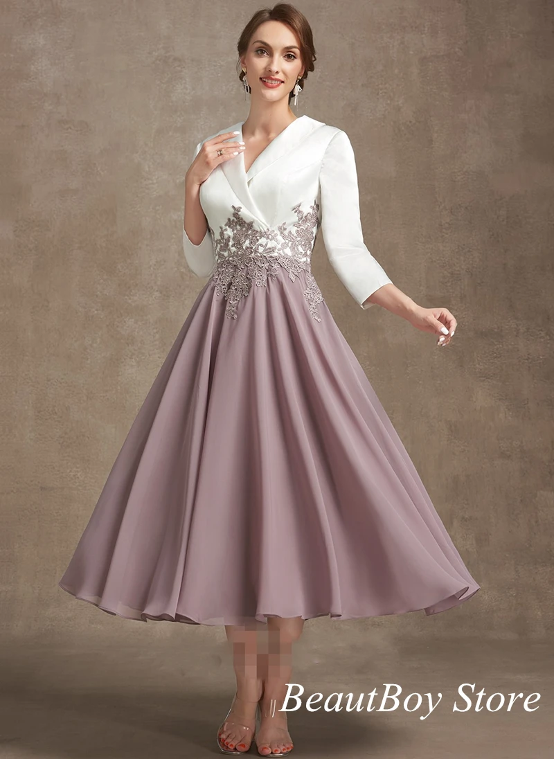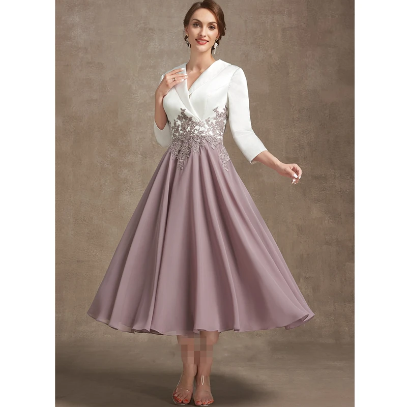 Женское платье для матери невесты, ТРАПЕЦИЕВИДНОЕ ПЛАТЬЕ С V-образным вырезом для выпускного вечера, шифоновое кружевное платье длиной ниже колена с полурукавами, модель 2022