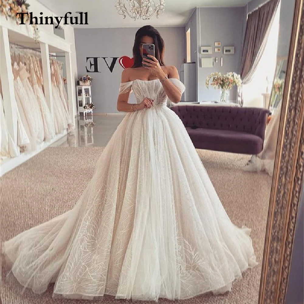 Элегантное кружевное длинное свадебное платье трапециевидной формы с цветочным рисунком, открытыми плечами, свадебное платье принцессы, платье в стиле oho