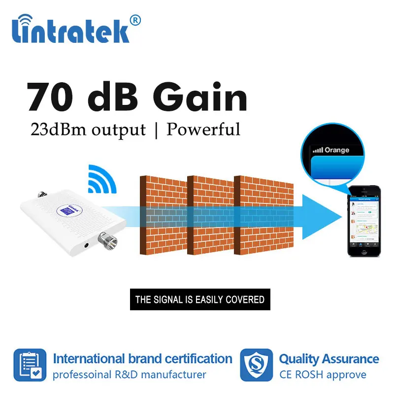 70dBС высоким коэффициентом усиления +23dBmВыход более мощный усилитель приводит к более сильному сигналу в любом месте, в любое время! Нет слабых сигналов больше!