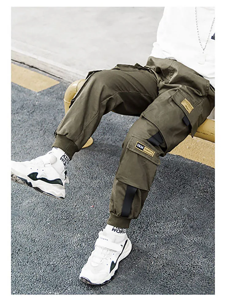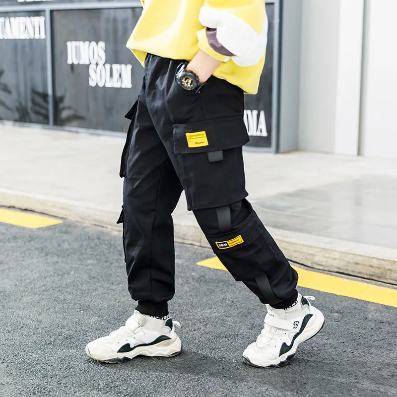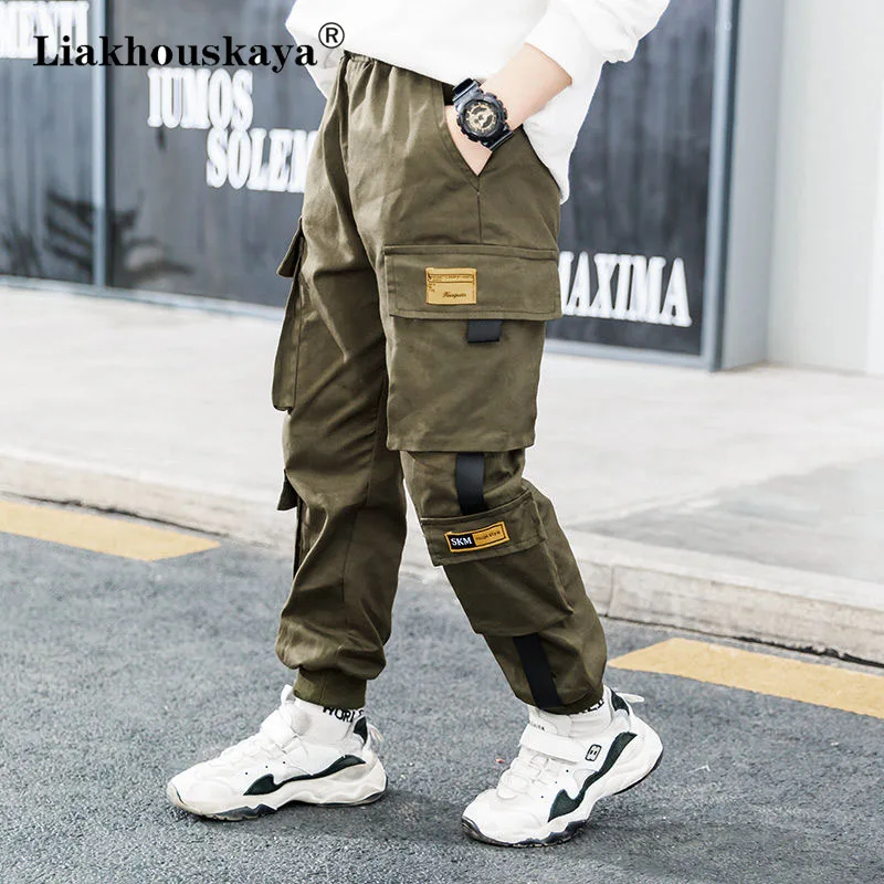 Джоггеры, брюки-карго для мальчиков, Детские весенне-осенние повседневные брюки для подростков, однотонные детские брюки для маленьких мальчиков, спортивные штаны, одежда