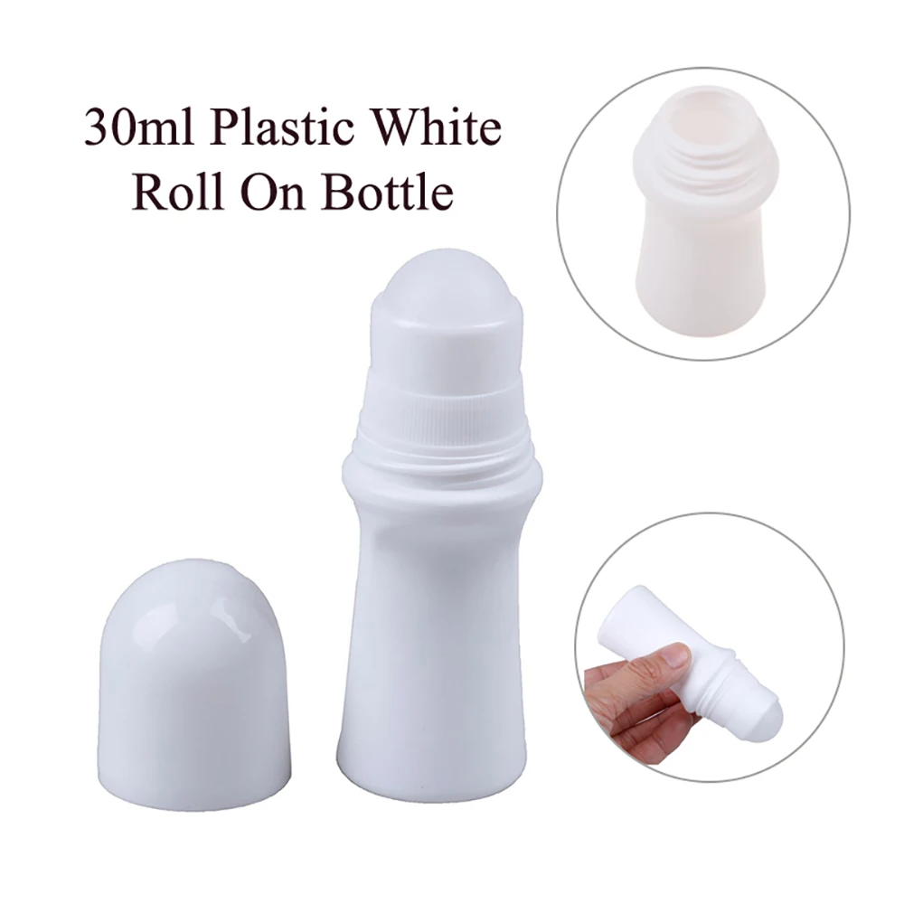 Пластиковый белый маленький рулон на бутылке, 30 мл, пустой, многоразовый, Стандартный, с пластиковым роликовым шариком, дорожный косметический контейнер