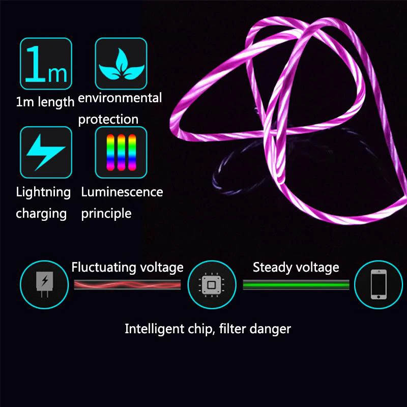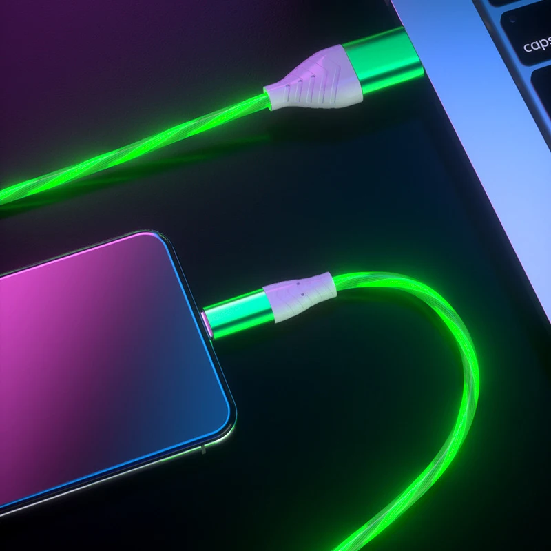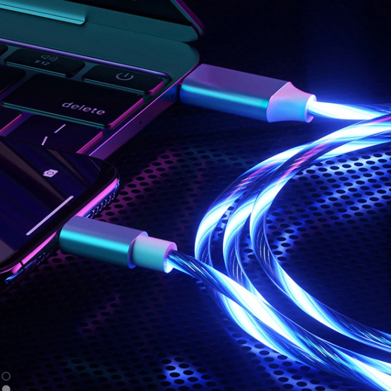 Зарядный кабель Micro USB Type-C, светодиодный светящийся для Iphon...