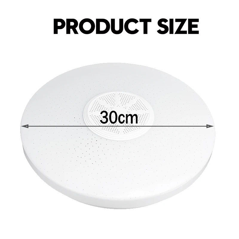 Спецификация:-Цвет: белый-Напряжение: с пультом дистанционного управления: 220 В переменного тока-Диаметр: 30 см (11,81 дюйма)-Режим управления: настенный выключатель/Управление мобильным приложением/дистанционное управление-Светильник режимы: подстраиваются под ночной светильник, холодный белый, теплый белый, нейтральный светильник тусклый или яркий, музыкальный ритм прозрачный градиентный фон красочный flashinging светильник-Мощность: 120 Вт