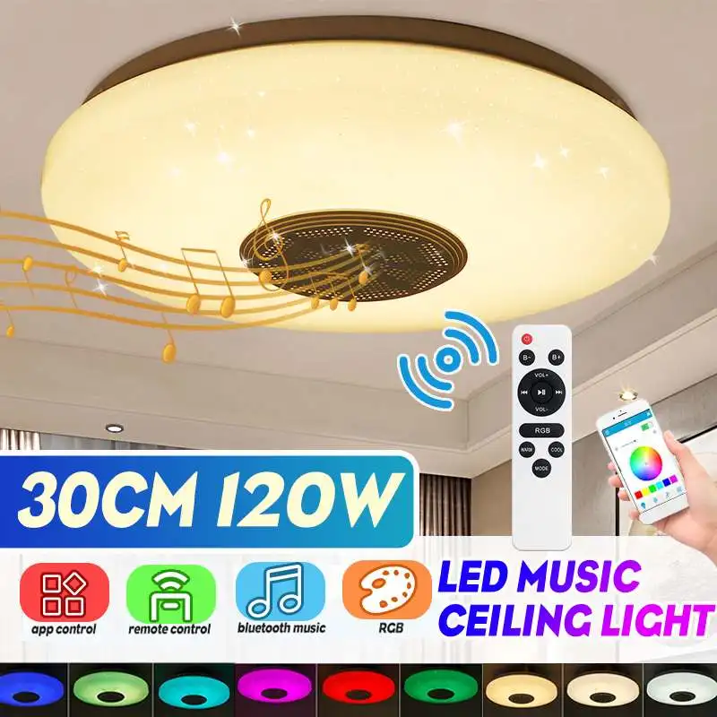 120 Вт 30 см Современный RGB Диммируемый музыкальный потолочный светильник, домашний светодиодный светильник с дистанционным управлением и управлением через приложение, потолочный светильник 220 В для дома, спальни