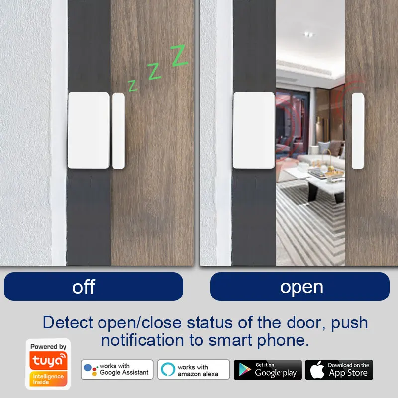 Смарт-датчик двери Tuya с Wi-Fi, Магнитные детекторы для дверей и окон, домашняя сигнализация с голосовым управлением через приложение Alexa Google Home Smart Life