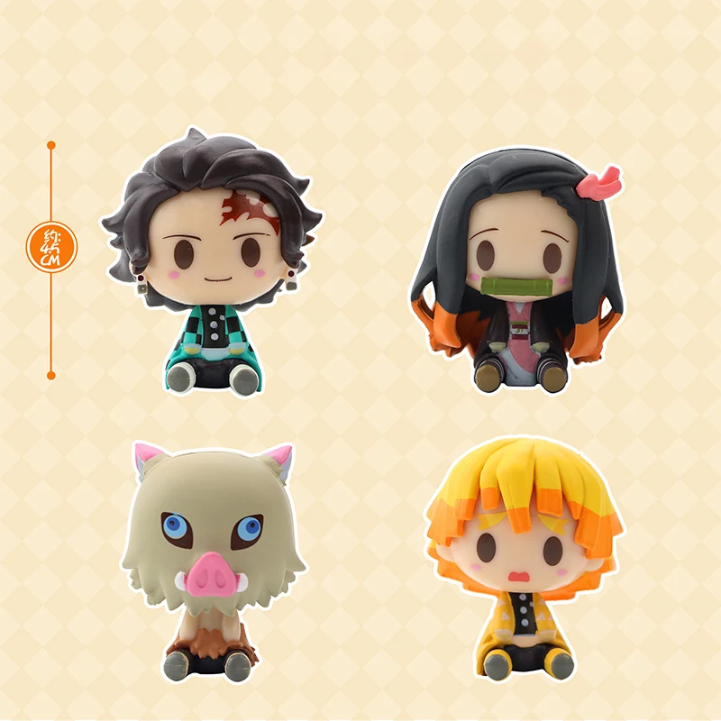 4 шт.компл. Demon Slayer, фигурки, игрушки Q версия сидя Kimetsu no...