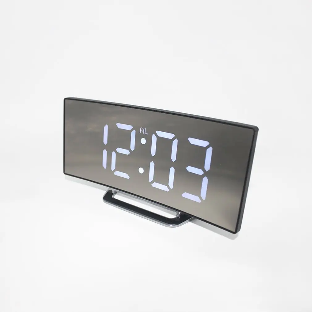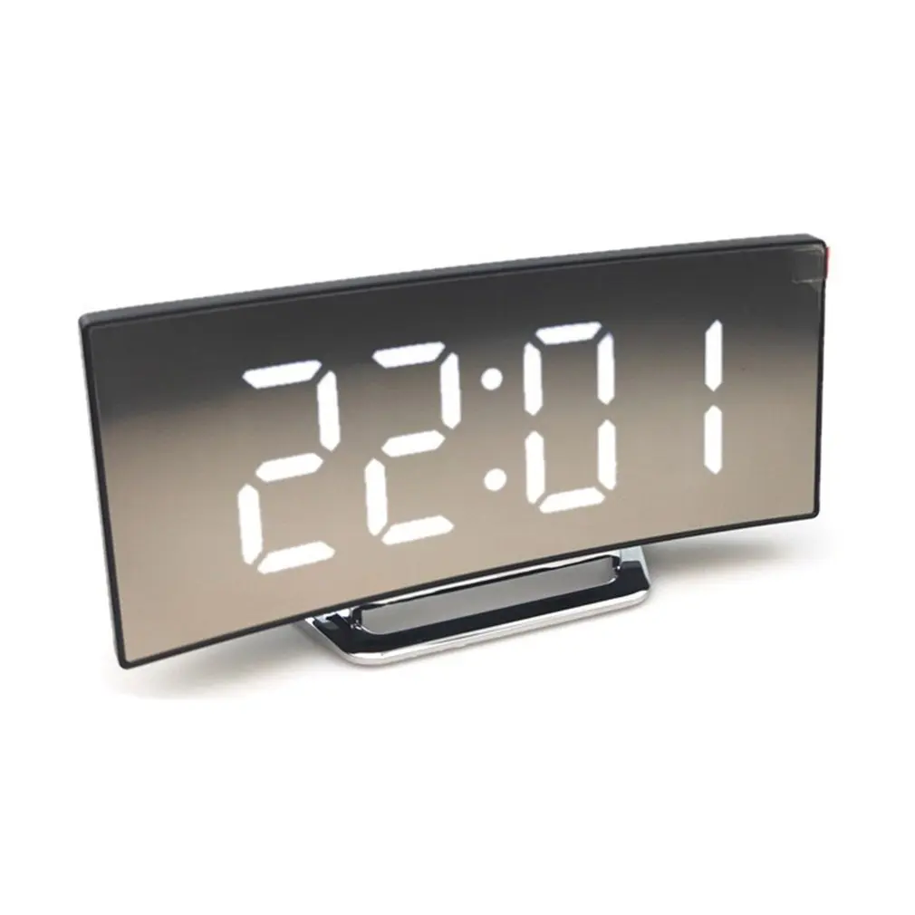 Цифровой будильник с изогнутым экраном, зеркальный светодиодный Будильник с регулируемой яркостью, большой экран, украшение для дома, функция повтора, домашний декор