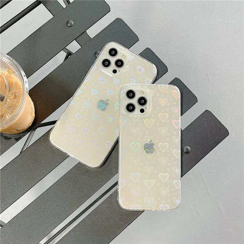 Модный градиентный лазерный чехол для телефона OPPO Realme 8 Pro A15 с рисунком сердца, мягкий силиконовый прозрачный чехол-накладка в подарок для пары