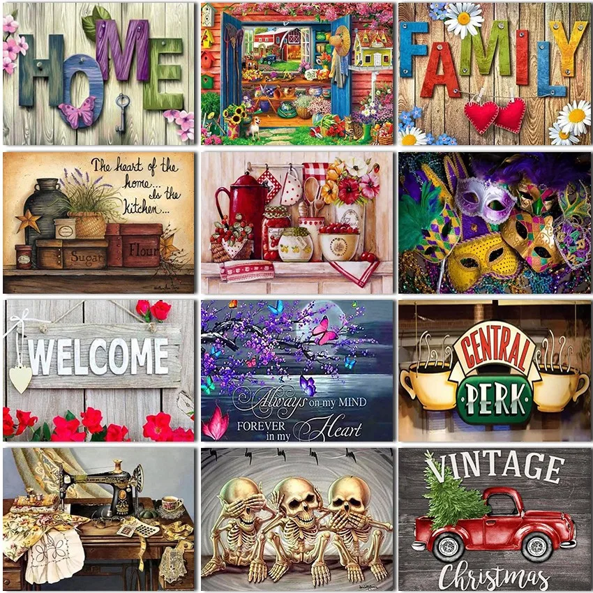 Алмазная 5D живопись сделай сам, пейзаж, цветок, уличная лампа, пол...