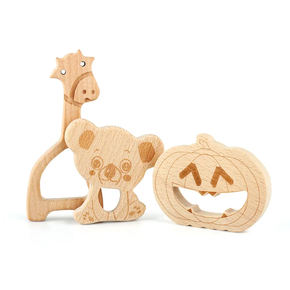 1 шт. деревянный Прорезыватель грызунов Мультяшные животные маленький стержень кулон для соски цепи продукты пищевого качества Натуральный Бук Прорезыватель для зубов
