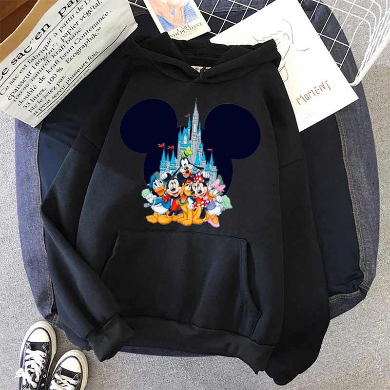 Женские толстовки Disney, Мультяшные толстовки, теплый пуловер, топ, модный Женский Повседневный пуловер с принтом, Женская толстовка большого размера