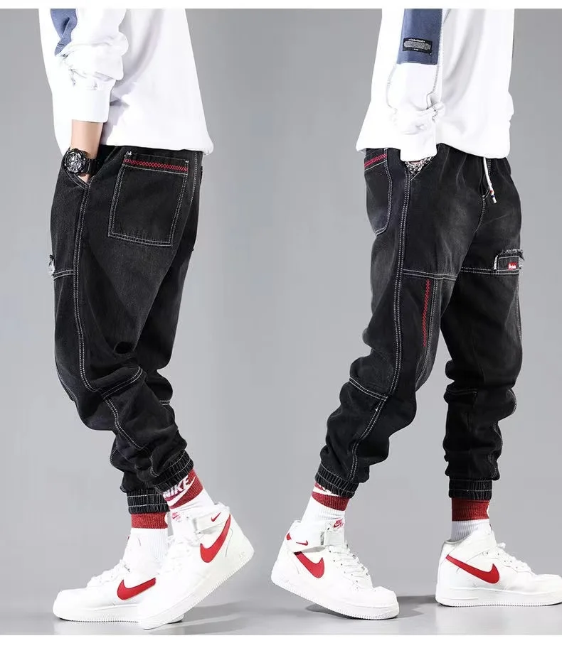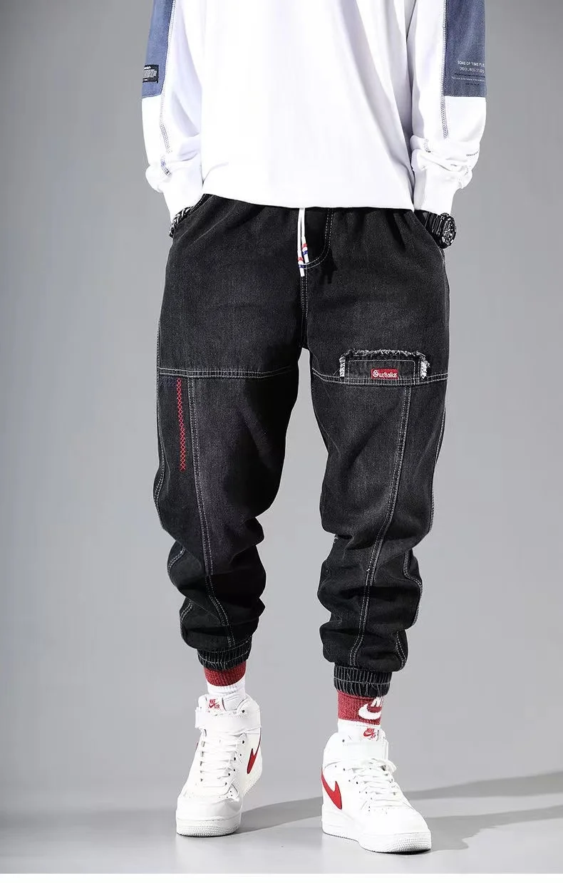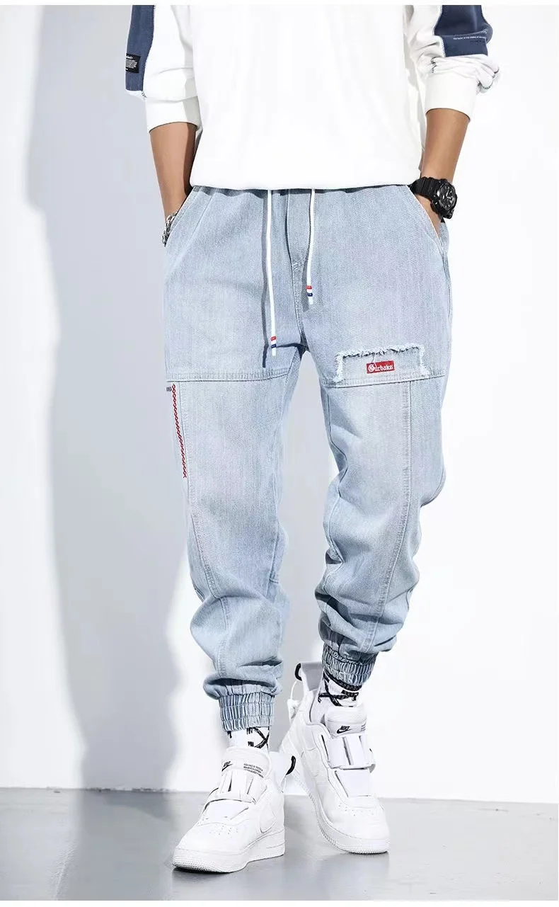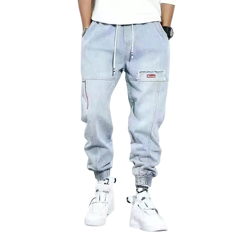 Джинсы-шаровары мужские свободного покроя, джоггеры из денима в сти...