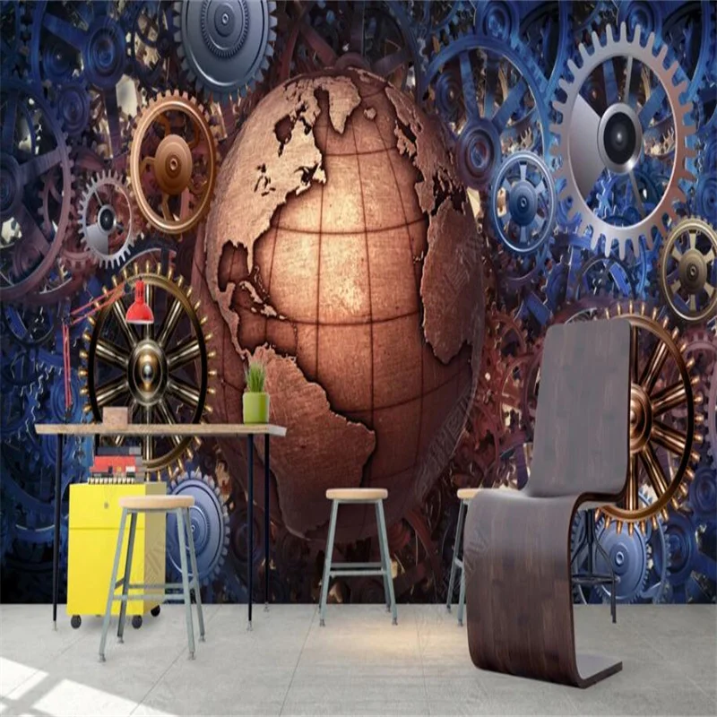 Ностальгический металлический Железный механический Шестеренчатый стержень KTV промышленный Декор на заказ настенная самоклеящаяся настенная бумага 3D фото настенная бумага