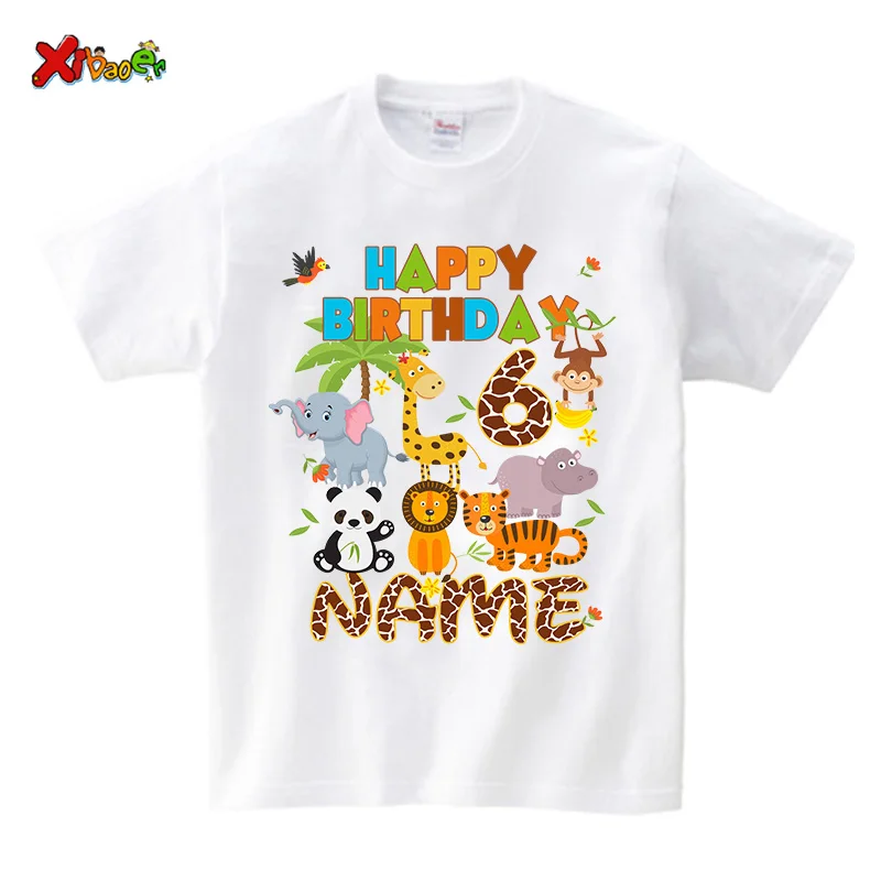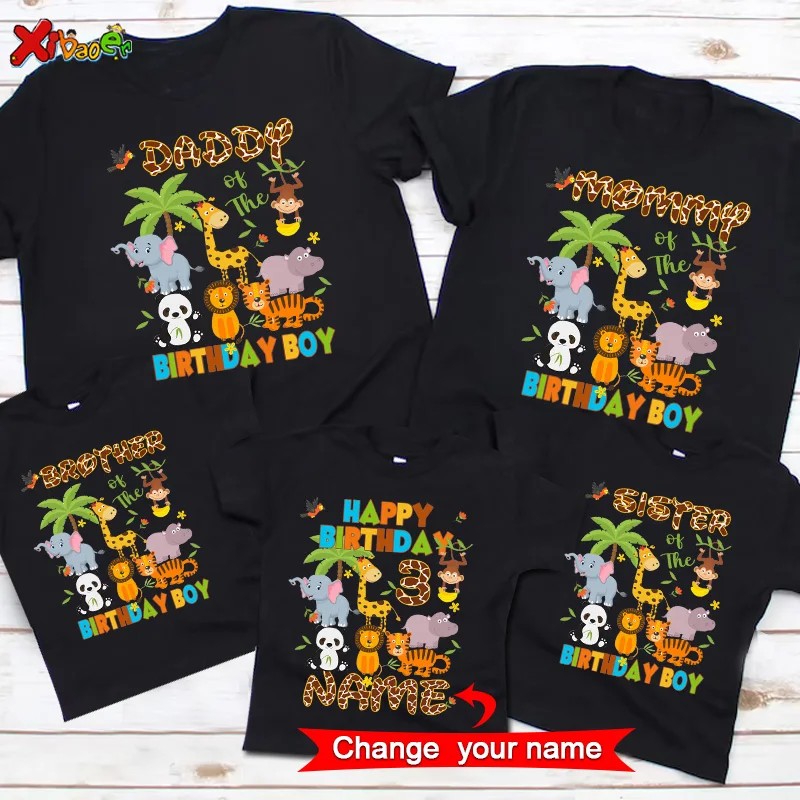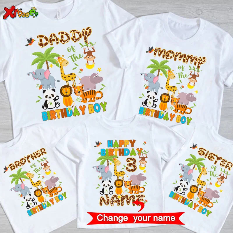 Футболка с животным зоопарком для дня рождения, Одинаковая одежда для всей семьи, рубашка для мальчиков и девочек на 3 года, футболка для вечеринки, одежда, детский наряд, имя на заказ