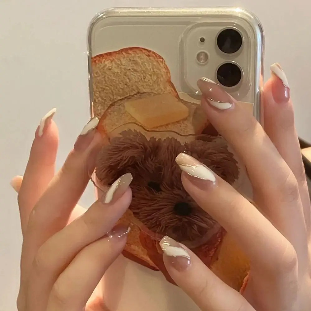 24 шт.кор. съемные накладные ногти с карамельным покрытием, француз...