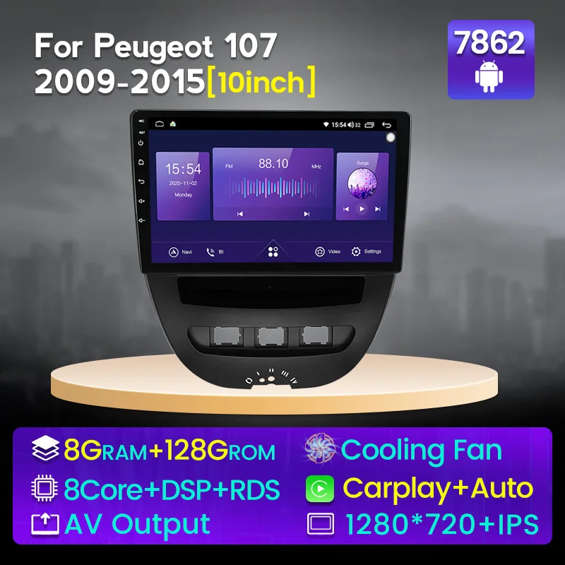 Автомобильный мультимедийный видеоплеер 8G 128G DSP Carplay на Android 11 для Peugeot 107 Citroen C1 Toyota Aygo 2005-2014 с GPS и dvd