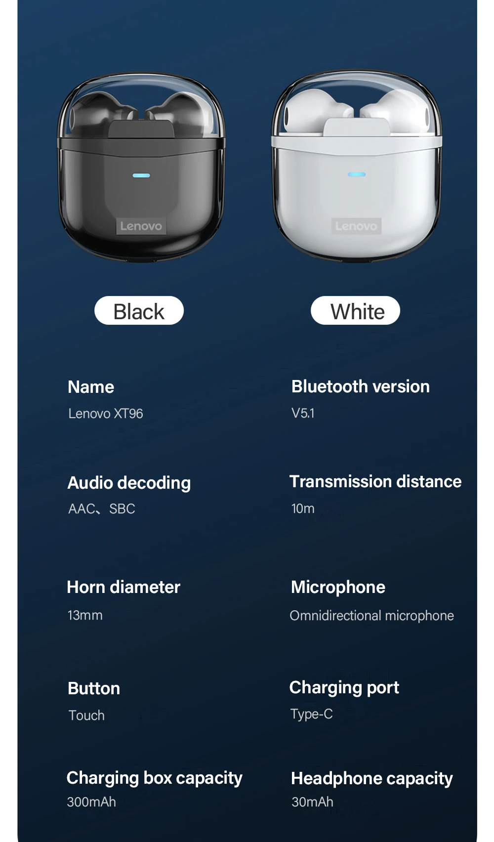 TWS-наушники Lenovo XT92 с поддержкой Bluetooth 5,1 и микрофоном