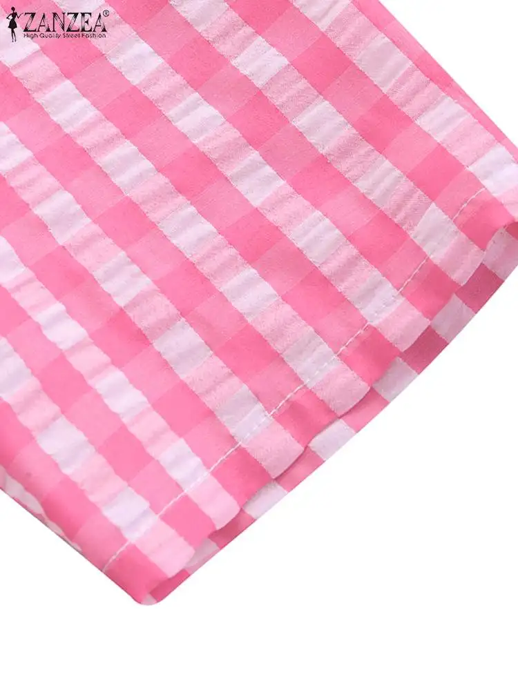 Весна 2022, Пляжное Платье ZANZEA в клетку, Повседневный Сарафан с ...