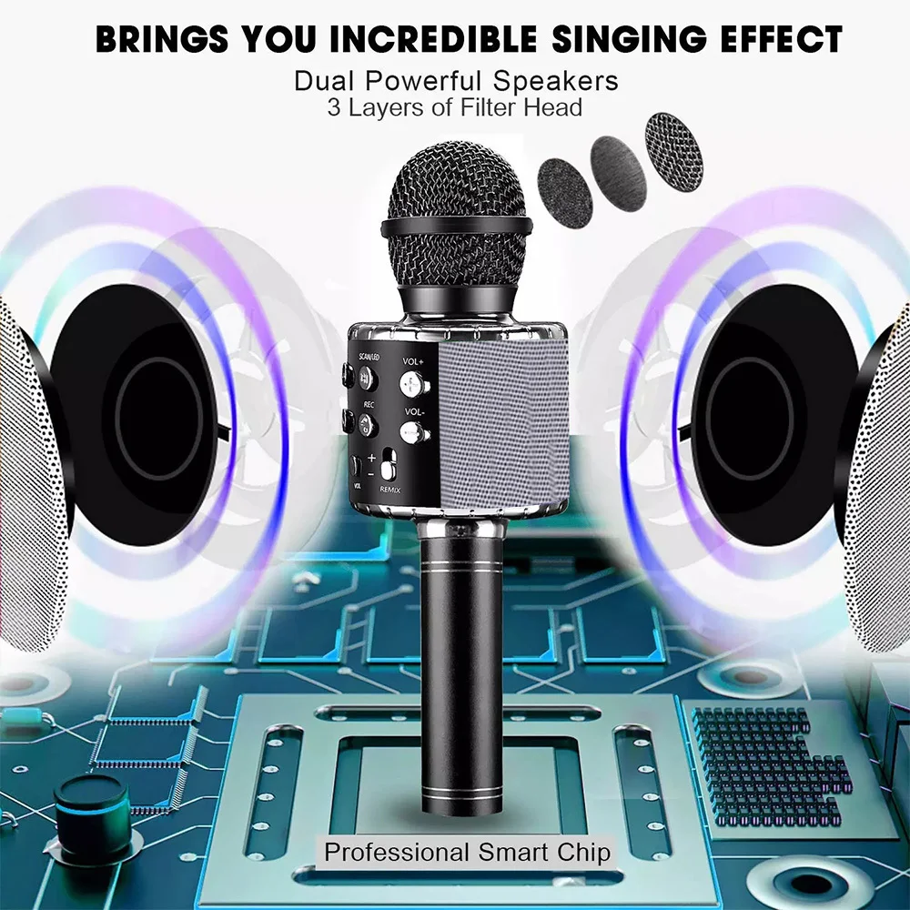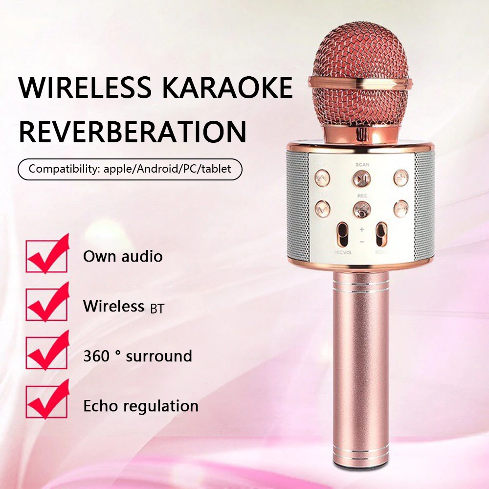 WS858 беспроводной микрофон Koraoke домашние вечерние портативные микрофон спикер Bluetooth-совместимый микрофон