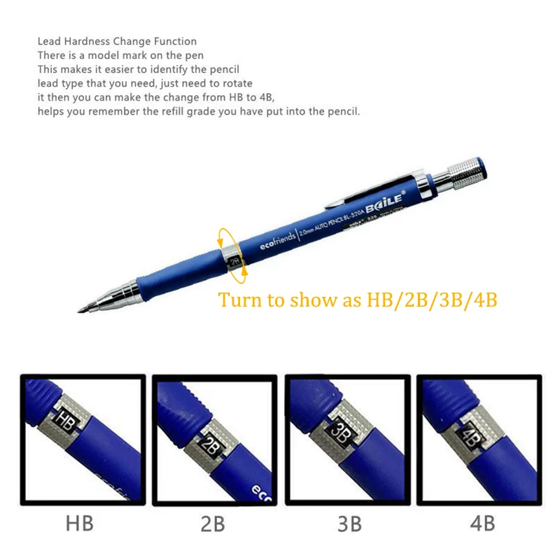 Металла механические карандаши 2,0 мм 2B свинца держатель карандаш ...
