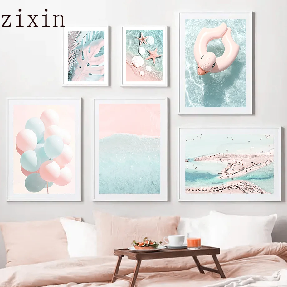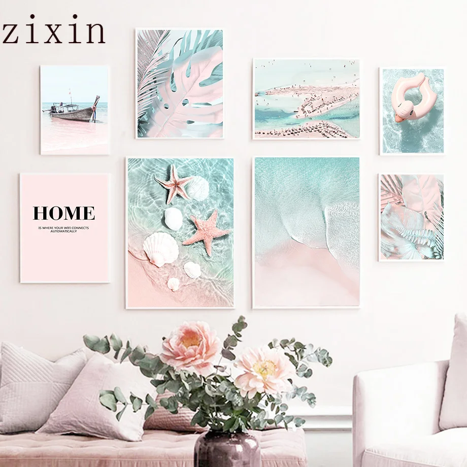 Настенные постеры с изображением розовых пляжных морских ракушек в скандинавском стиле, картины, настенные картины для декора гостиной