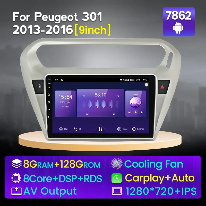 Автомобильный стерео Мультимедийный Плеер на Android 11 8 + 128G для Peugeot 301 Citroen Elysee 2013-2016 Авторадио GPS навигация DVR камера IPS