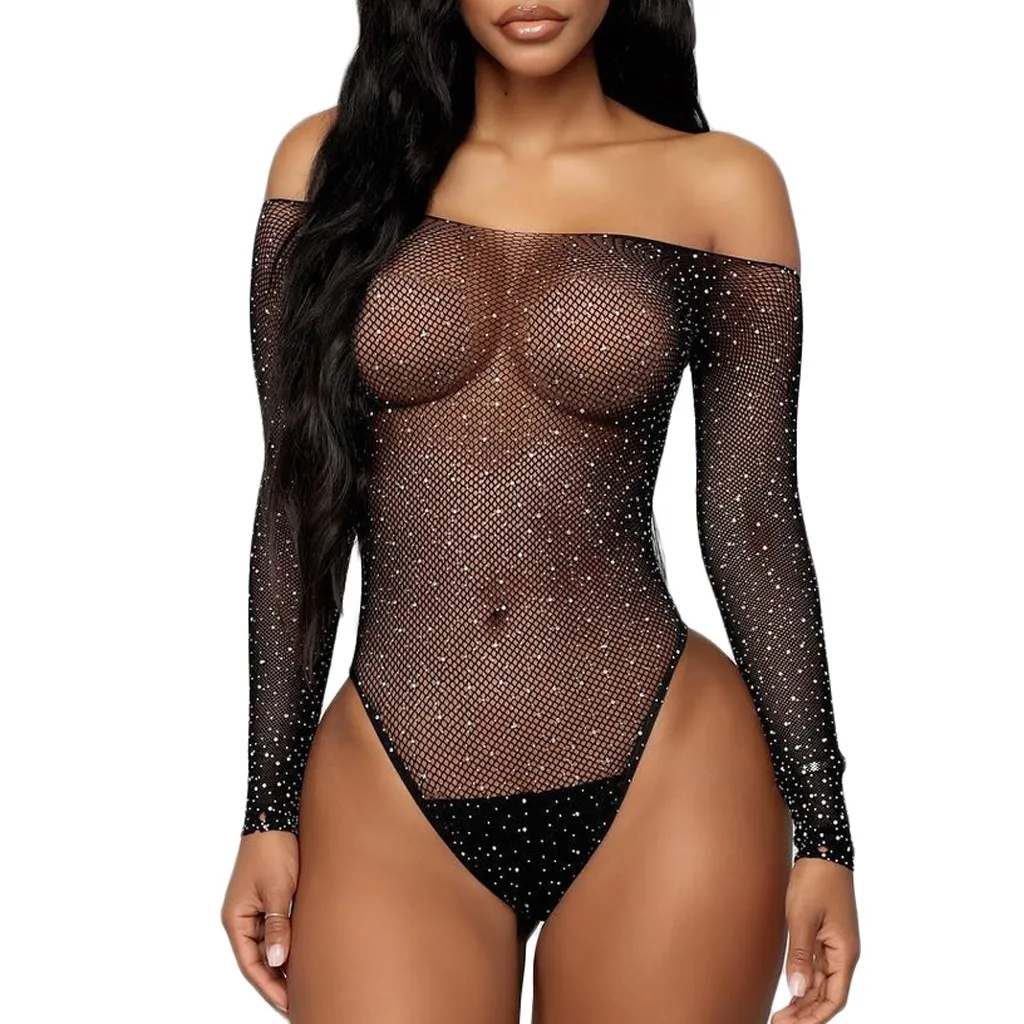 Сексуальное нижнее белье для женщин, Эротическое нижнее белье Стразы с открытыми плечами, прозрачное Сетчатое нижнее белье, порно, сексуальные чулки