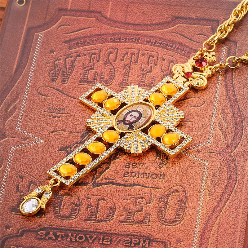 Нагрудное ожерелье с крестом Иисуса Православная икона длинное ожерелье крестин христианский Золотой священник распятие Длинная цепочка религиозные поделки