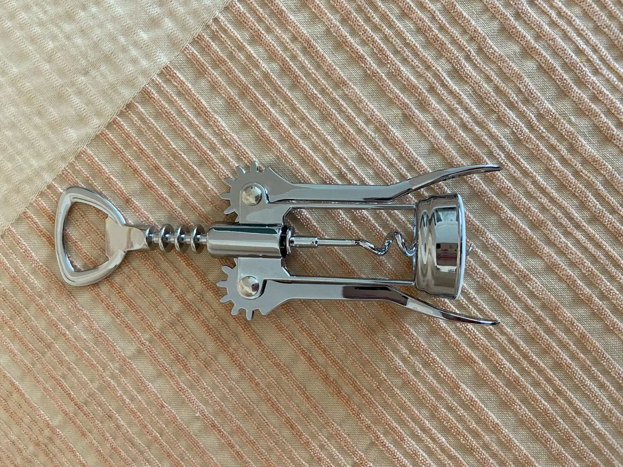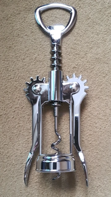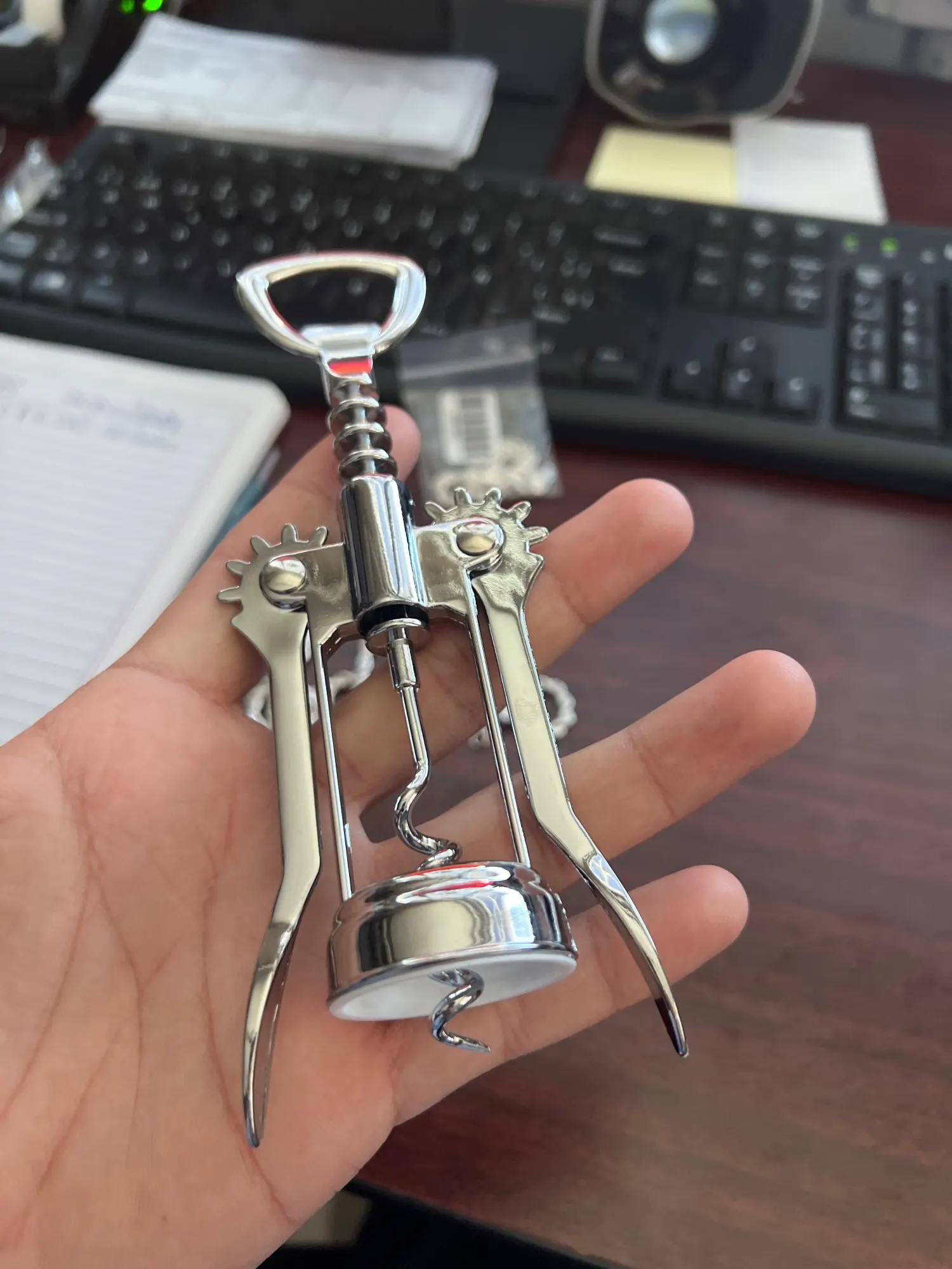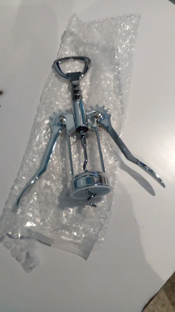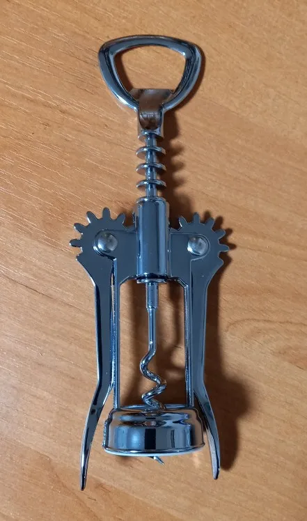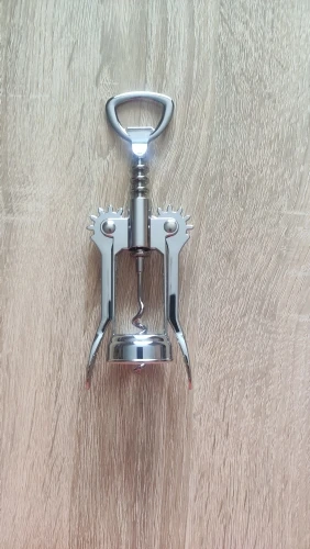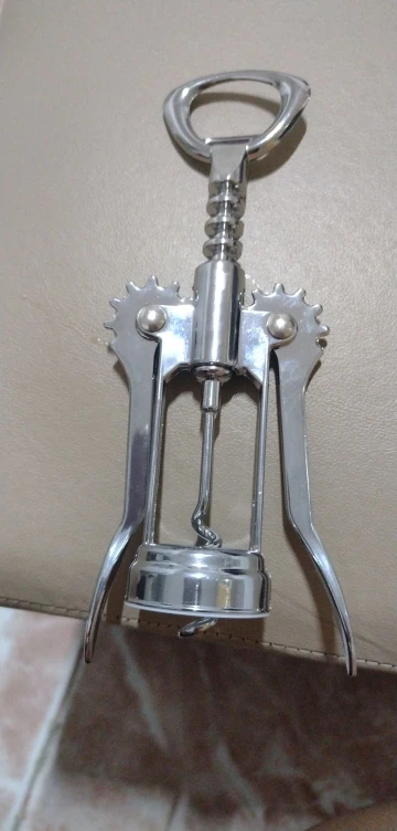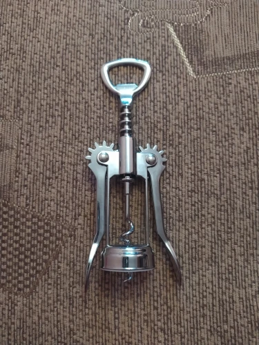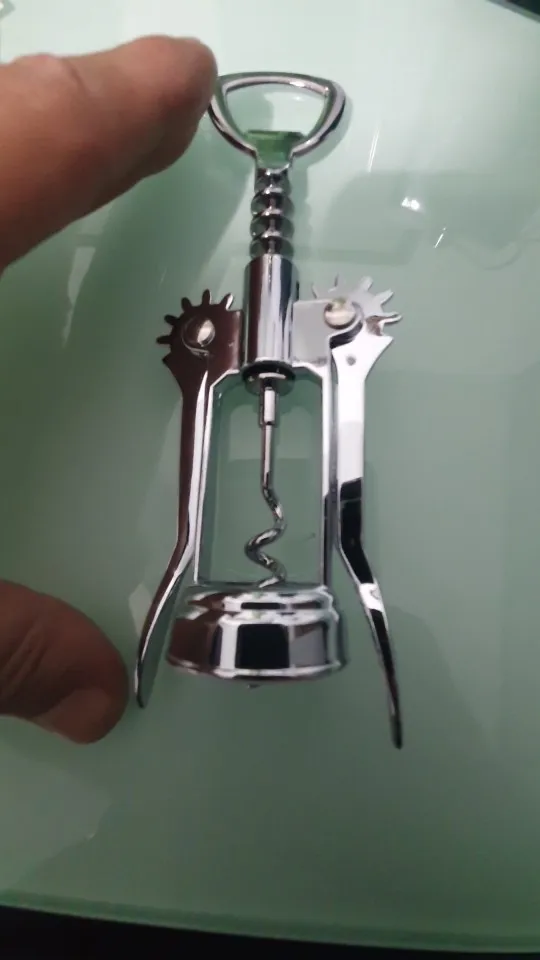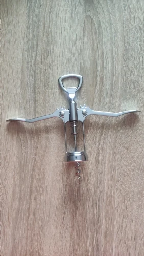 Это штопор для нежных винных пробок. Если в руке потрясти- шатается и тарабанит все. Из металла только винтовая спираль и заклёпки, остальное окрашенный пластик либо тонкий силумин. Швы от форм никто даже не скрывает. Ощущение одноразового товара. Не рекомендую из-за низкого качества товара.