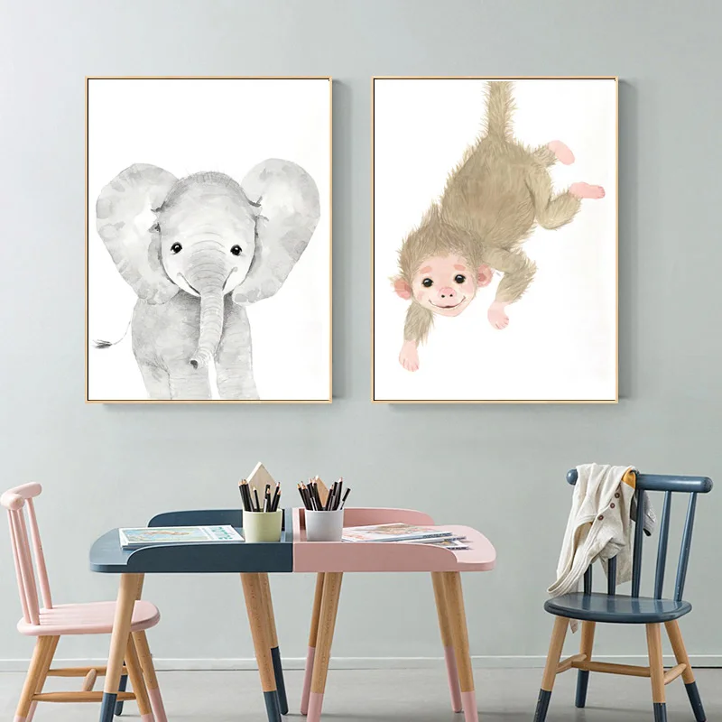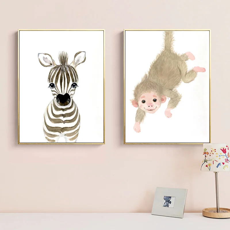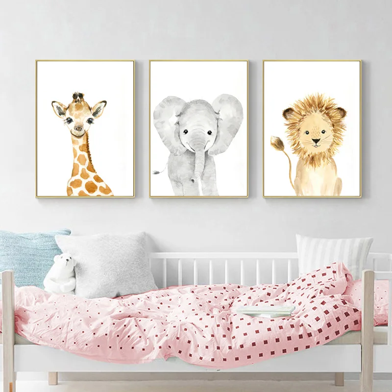 Акварель Слон Лев Жираф Обезьяна постеры с животными детская стена Художественная печать холст картина ребенок картина Детская комната Декор