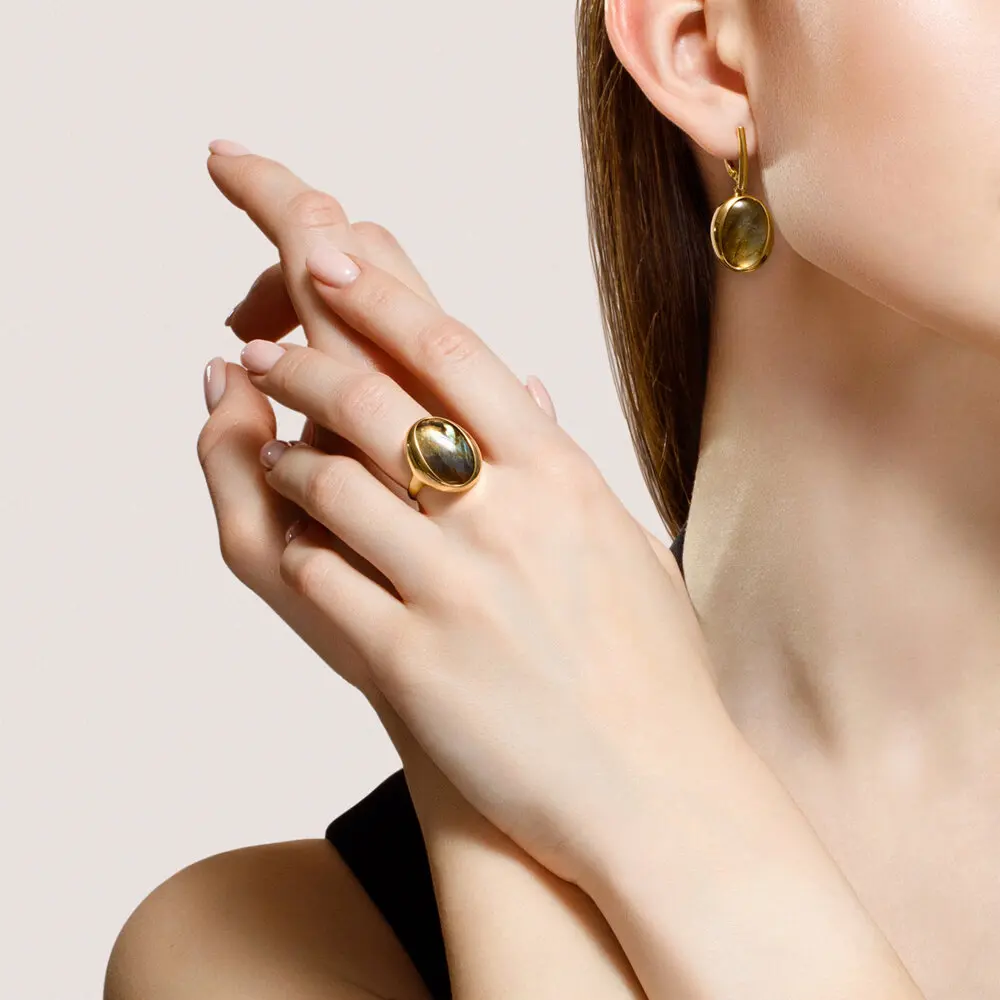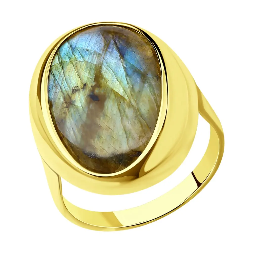 Кольцо SOKOLOV из золочёного серебра с лабрадоритом, НОВИНКА