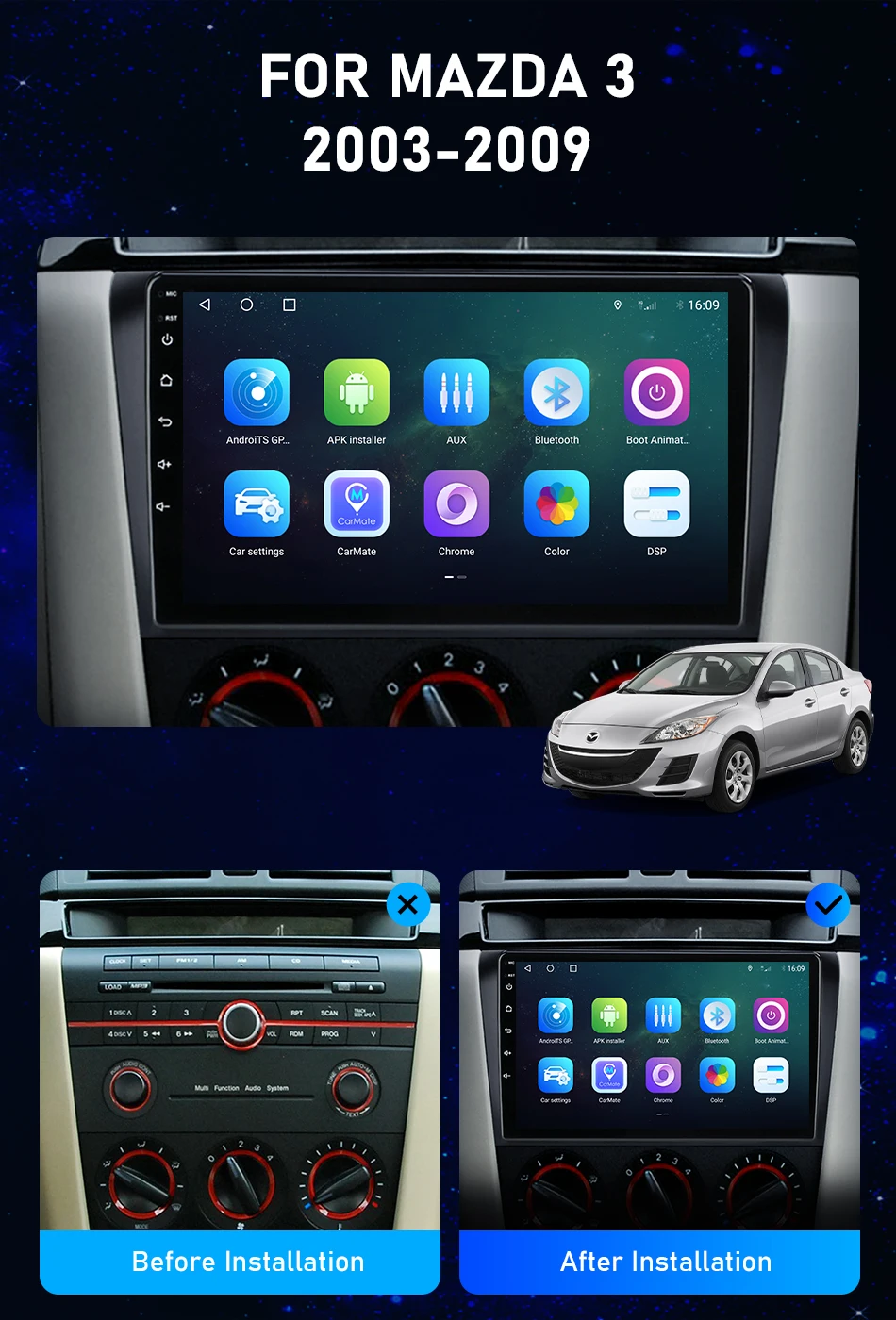 Автомагнитола Develuck, 2DIN, Android 11, для Mazda 3 2003-2009