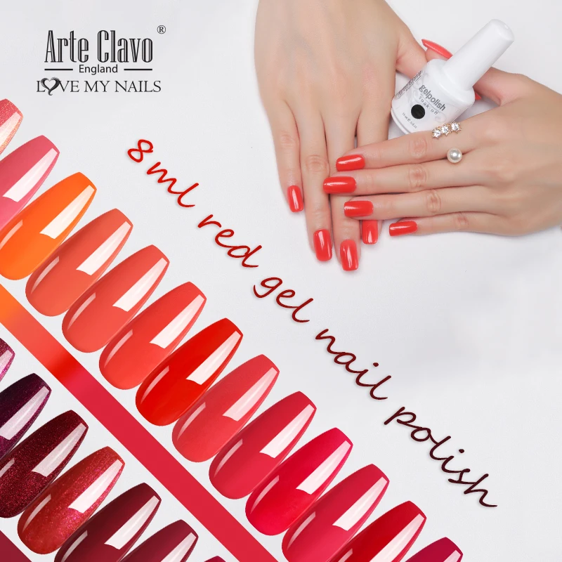 Arte Clavo 8 мл красный цвет Гель-лак Топ базовый набор Гель-лак светодиодный лак для маникюра гель-краска для дизайна ногтей Сделай Сам дизайн гель для ногтей с блестками