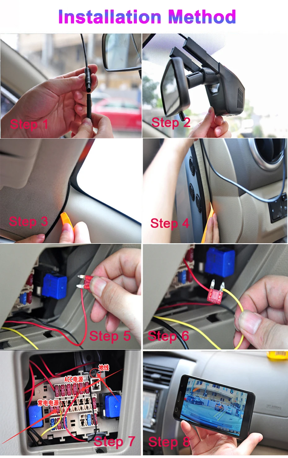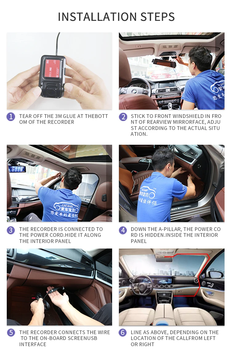 TTFTFP Скрытый Автомобильный видеорегистратор с Wi-Fi, передняя и задняя камеры, 2 объектива FHD 1080P, циклическая запись, управление через приложение, запись процесса вождения