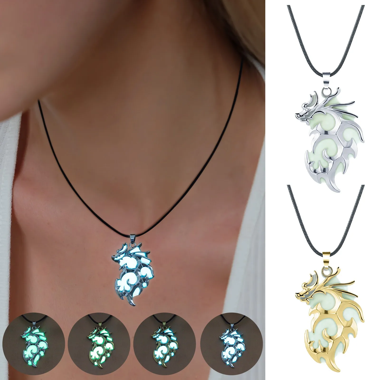 Винтажное светящееся ожерелье, светящееся ожерелье, аксессуар, светящееся подвеска в виде дракона