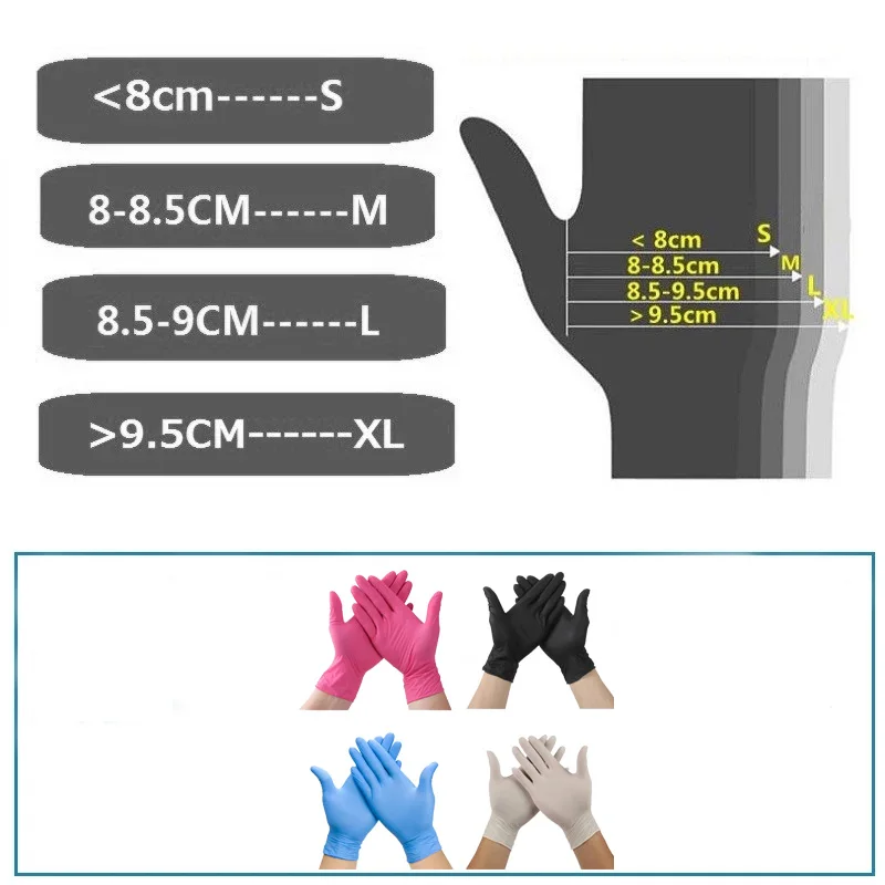 100 шт. нитриловые перчатки водостойкие латексные перчатки от аллергии пищевые безопасные рабочие перчатки для уборки для домашнего механика кухня
