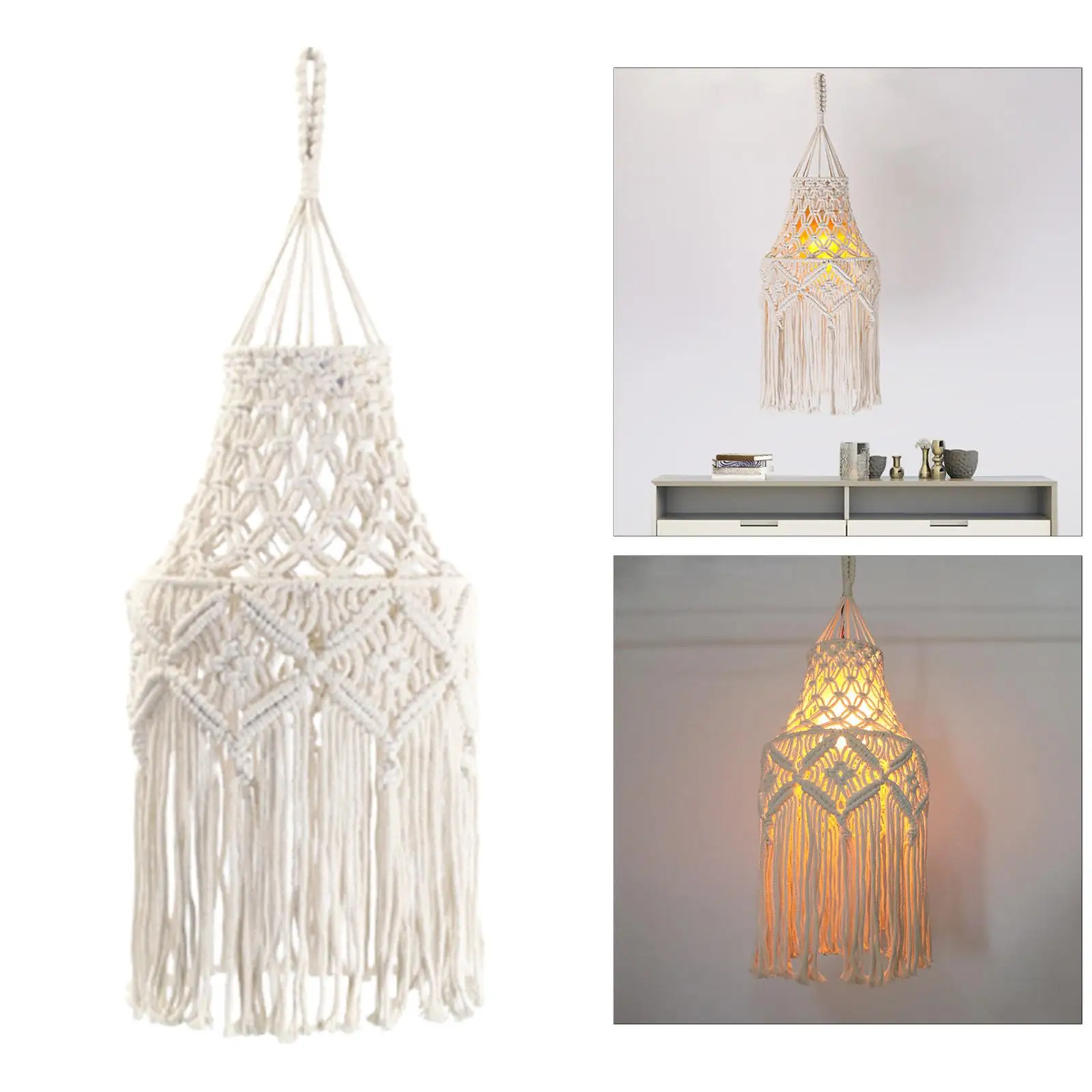 Ручная вязка макраме Лампа Тень гобелен хлопковая веревка в современном стиле Бохо для спальни домашний декор для спальни гостиной комнаты